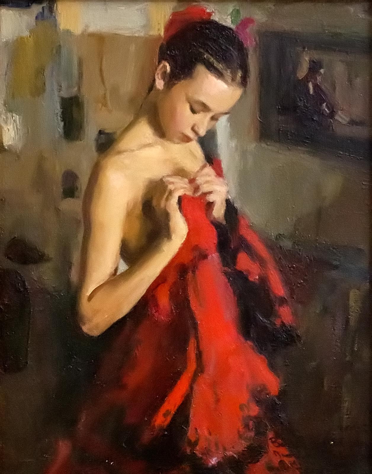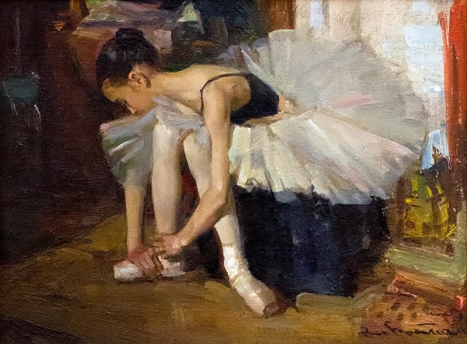 Фото №161187. В.И. Братанюк, В балетном классе 2005«Название выставки — „Связь времен“- символично: Прошлое — продолжается в Настоящем. Настоящее — предопределяет Будущее. Художники, представленные на выставке, продолжают не только традиции устройства „передвижных выставок“, но и традиции реалистического искусства, заложенные классическим образование нашей художественной школы» (