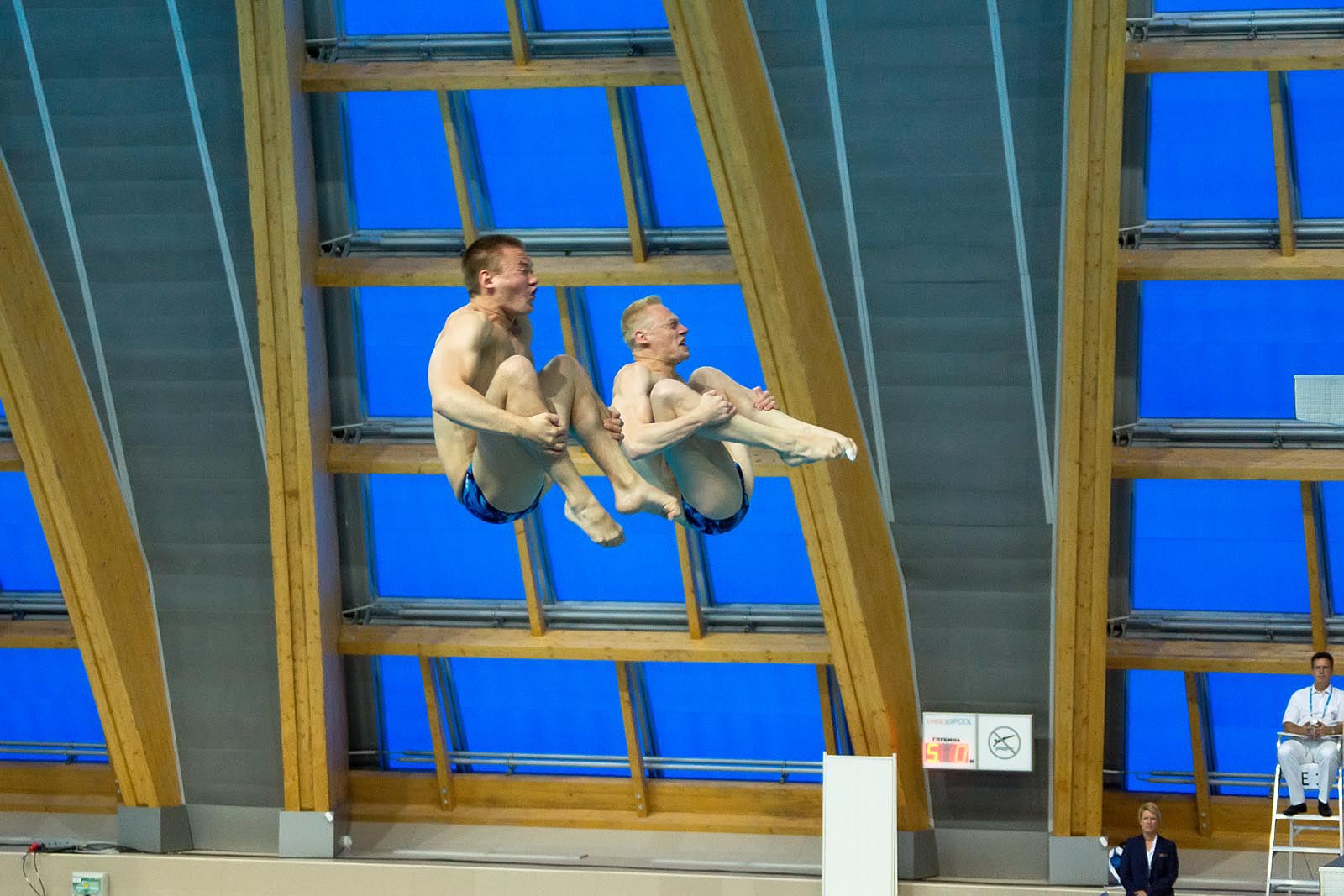 Россияне Илья Захаров и Евгений Кузнецов заняли первое место в соревнованиях по синхронным прыжкам с трехметрового трамплина на Универсиаде. Их результат - 479,34 балла.