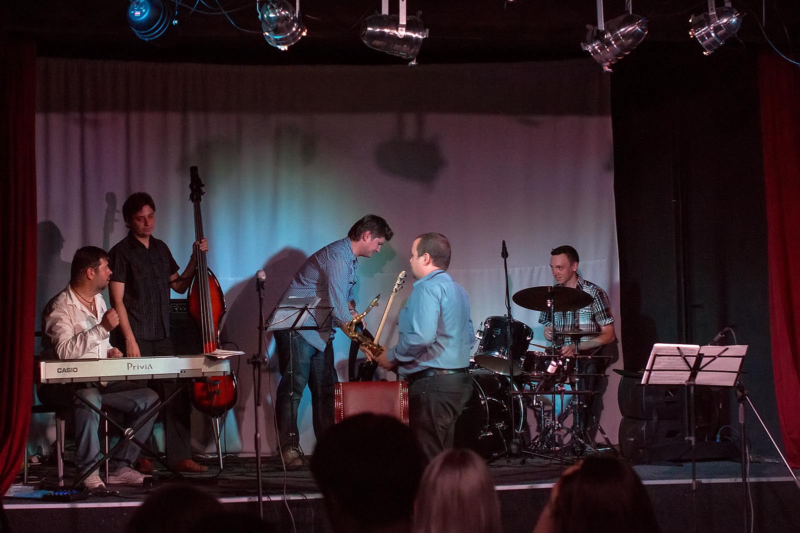 Фото №170491. Art16.ru Photo archiveПервую композицию «Stella by Starlight» Виктора Йонга джазмен посвятил всем Стеллам, находящимся в зале и вдохновляющим музыкантов своим светом. Продолжила концерт энергичная импровизация пока ещё без названия, которую Олег Анохин написал в дни Универсиады. Маэстро предложил публике придумать название. На это моментально откликнулась Ольга Скепнер и предложила название «Runung jazz lover» — на мой взгляд, очень удачное. Далее публику очаровала романтичная мелодия Мишеля Леграна о Париже под названием «Лето 1942 года», вдохновенно исполненная музыкантами. Бархатный тембр голоса Ольги Скепнер звучал особенно проникновенно и трогательно. Следующим номером — опять «no-name». В этот раз за оригинальное название был обещан приз — 2 билета на следующий концерт.