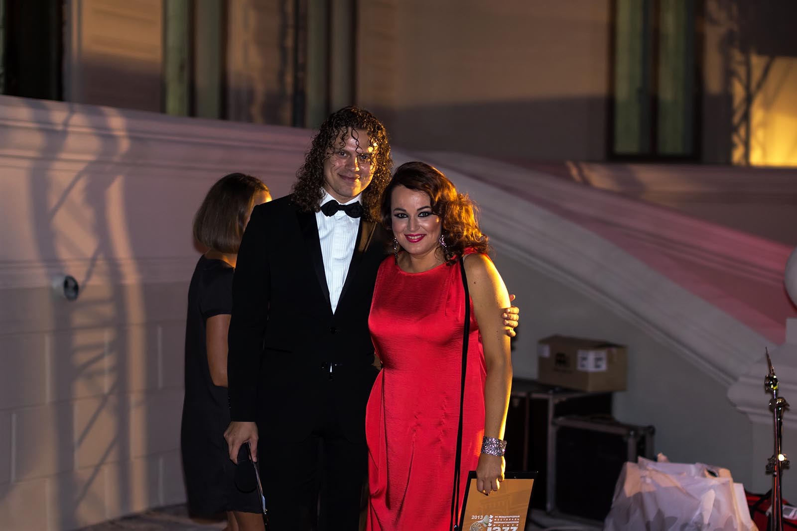 Фото №171099. Джаз в усадьбе Сандецкого. 8.07.2013. Александр Герасимов, Ольга СкепнерНа сцене — Ольга Скепнер и Александр Герасимов, ведущие вечера. После приветственных слов зрителю, представления спонсоров, без которых проведение таких грандиозных концертов было бы невозможным, следует приглашение артистов, ради которых публика собралась.