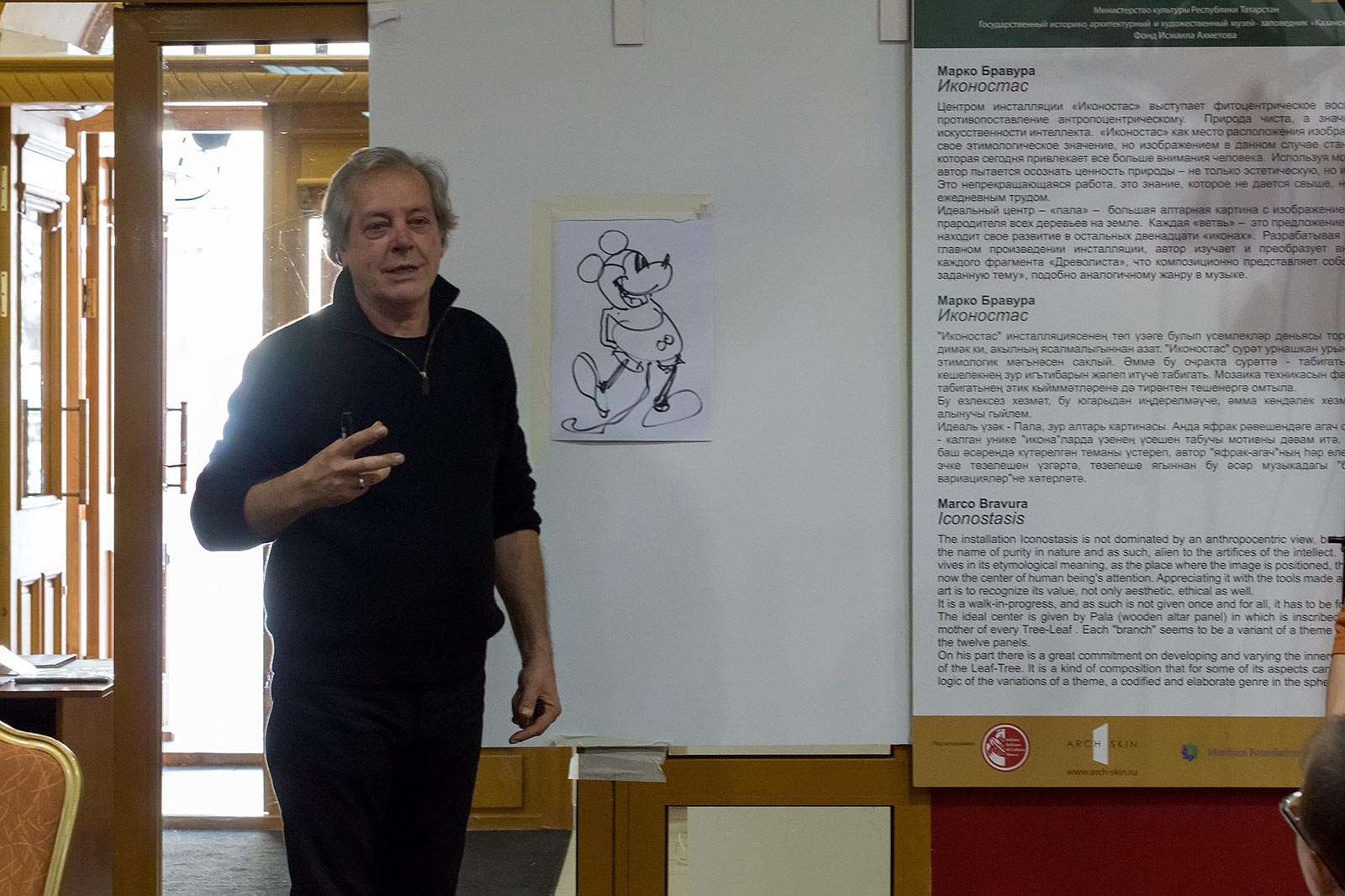 Фото №175420. Art16.ru Photo archiveКороткий 10-и минутный фильм, показанный перед началом мастер-класса, поведал о большой работе итальянского художника-мозаичиста с детьми. Марко Бравура разработал методическую программу в сфере искусства, которая представляет собой инновационный педагогический подход к обучению детей.
