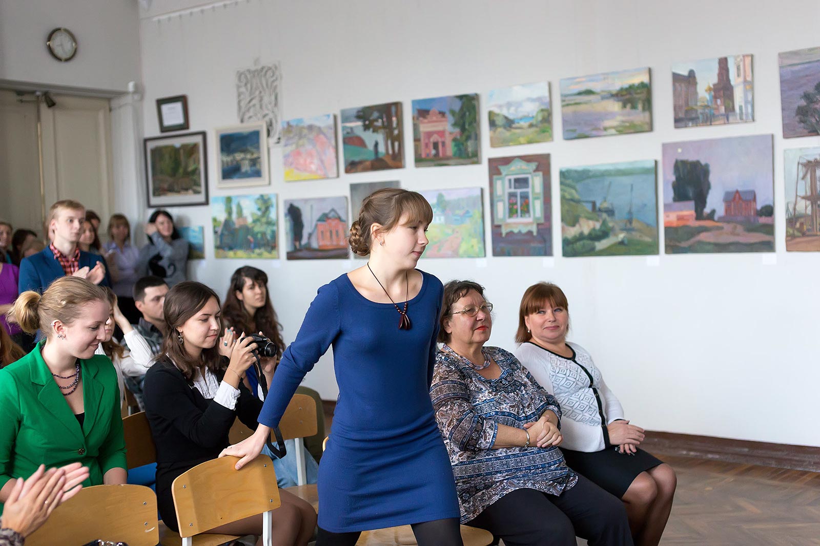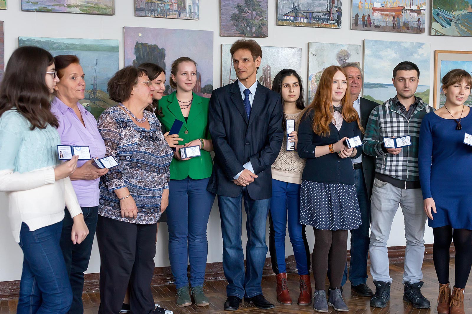 Фото №179856. Фрагмент экспозиции выставки работ летней практики студентов филиала МГАХИ им. СуриковаВ зале с экспозицией выставки состоялось торжественное заседание, на котором первокурсникам были вручены студенческие билеты.