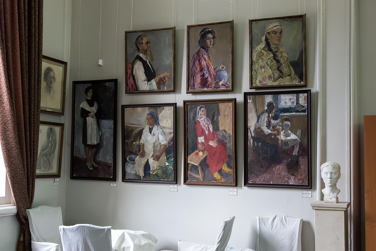 Одно из помещений знакомит с работами учеников КХУ нач.-сер. XX в. Там же я увидела стенды, оформленные старинными фотографиями и рассказывающие о периодах истории КХУ.