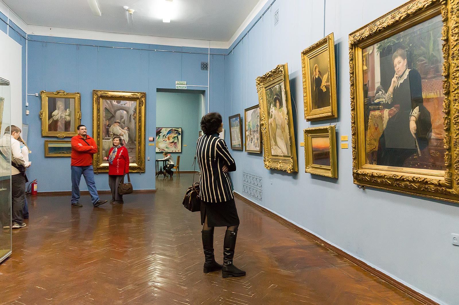 Фото №182697. Art16.ru Photo archiveПоблагодарив Веру Викторовну, отправляюсь на второй этаж, там экскурсию по выставкам ведет Новикова Элеонора Юрьевна. Лихачевский зал и экспозиция выставки «Мариус Бауэр. Голландский ориенталист снова в России» — ее вотчина. Возле Элеоноры Юрьевны собралась группа посетителей, интересующихся голландским искусством.