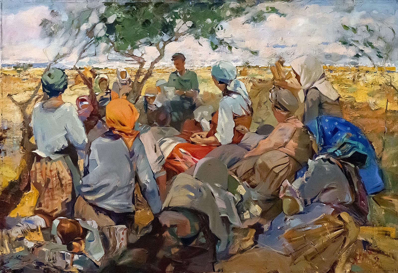 Фото №209929. СОКОЛЬСКИЙ Н.М. 1900-1970 ЖЕНСКАЯ БРИГАДА В ПОЛЕ. 1934 Холст, масло