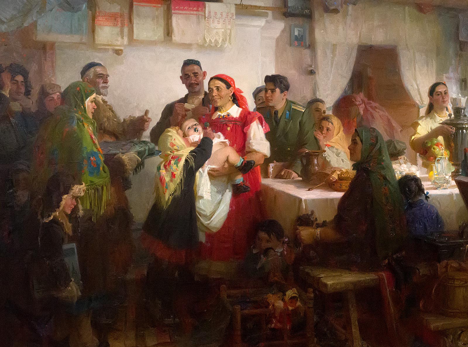 Фото №209995. ЯКУПОВ Х.А. 1919-2010 ЧЕСТВОВАНИЕ МАТЕРИ ГЕРОИНИ. 1957 Холст, масло