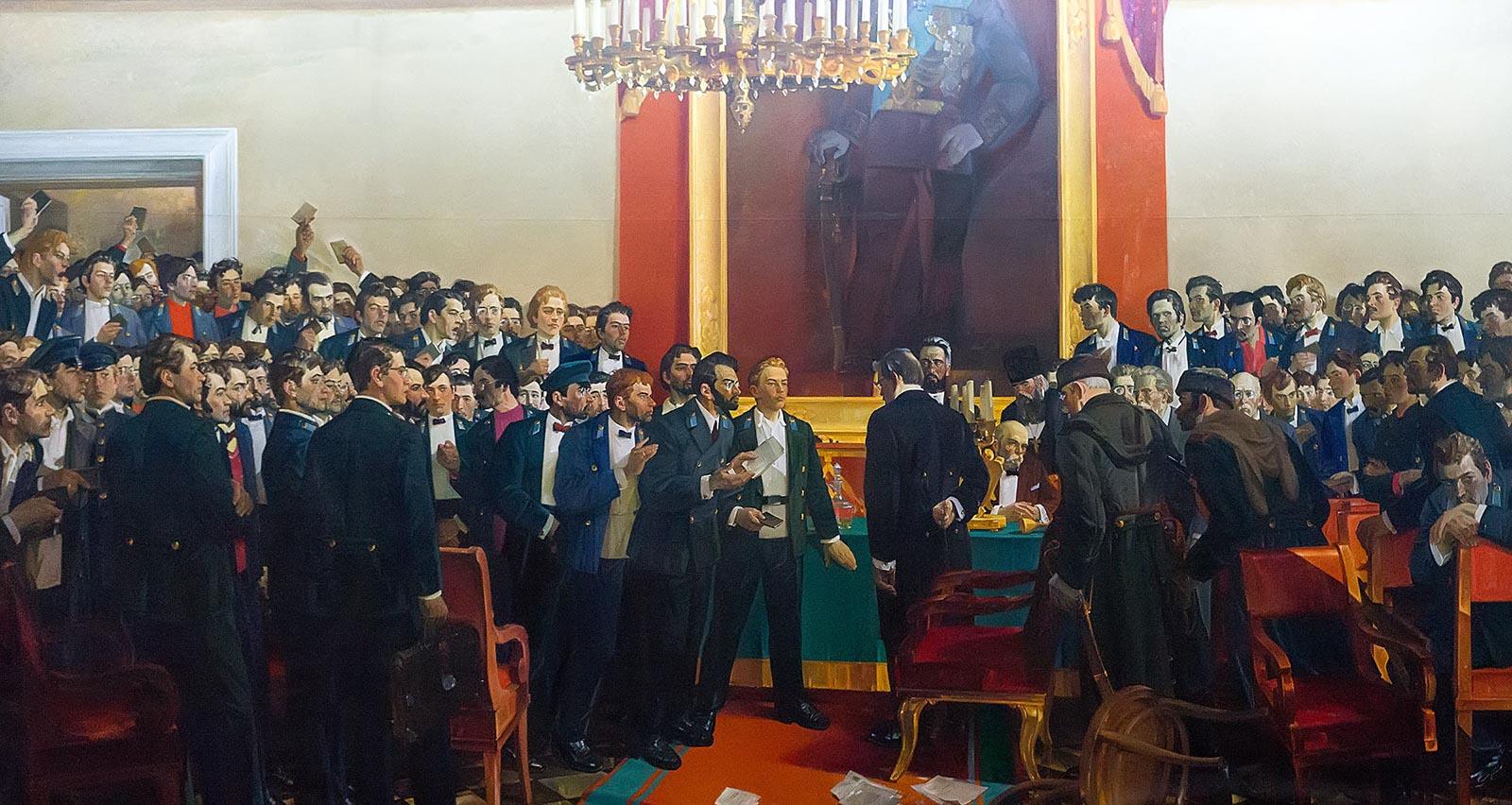 Фото №210073. ЯКУПОВ Х.А. 1919-2010 В.И. ЛЕНИН НА СТУДЕНЧЕСКОЙ СХОДКЕ В КАЗАНСКОМ УНИВЕРСИТЕТЕ В 1887г. Холст, масло