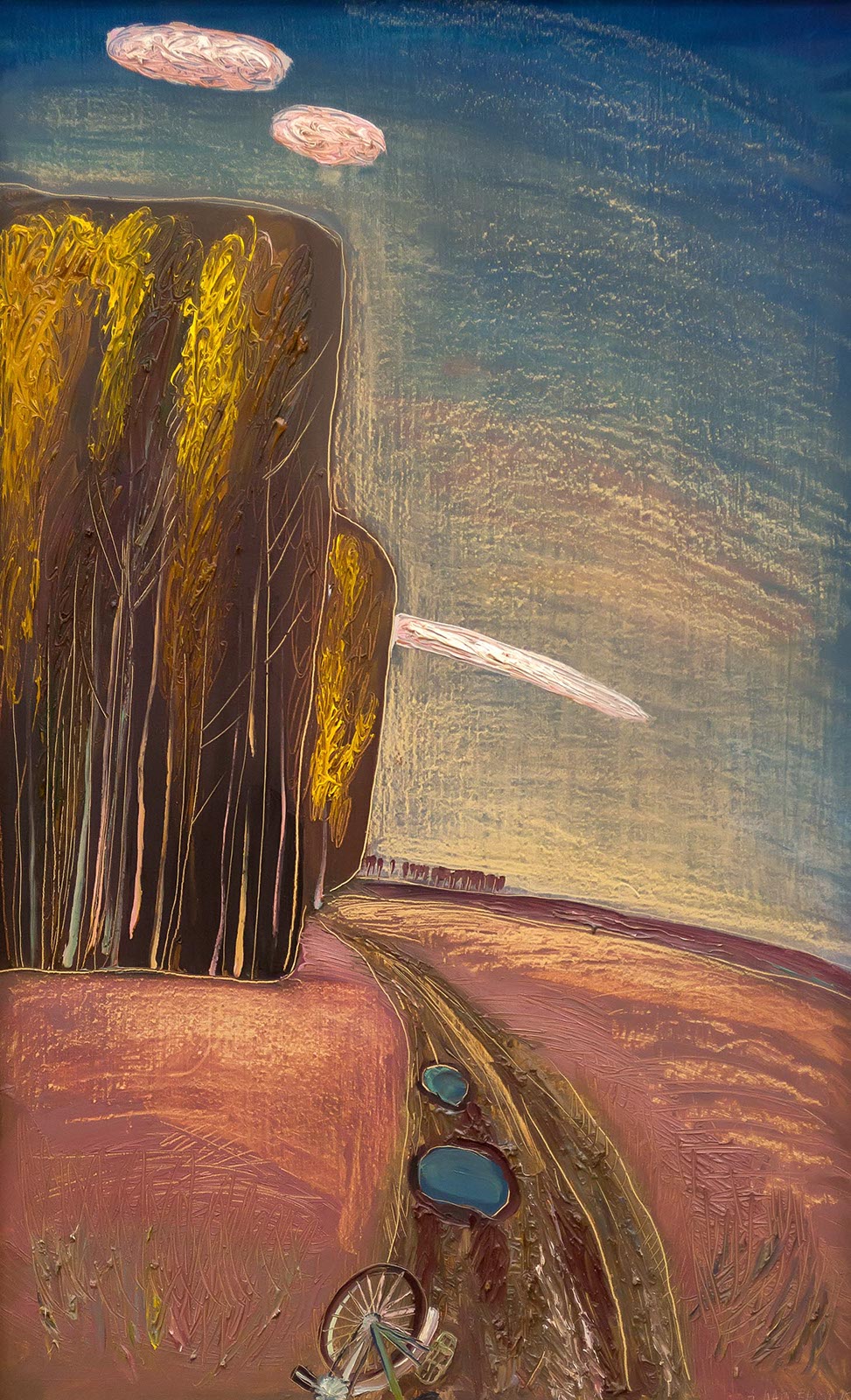Фото №210601. КАРПЕНКО А.В. 1957-2009 ВЕЛОСИПЕД У ДОРОГИ. 1995 Картон, масло2000-е