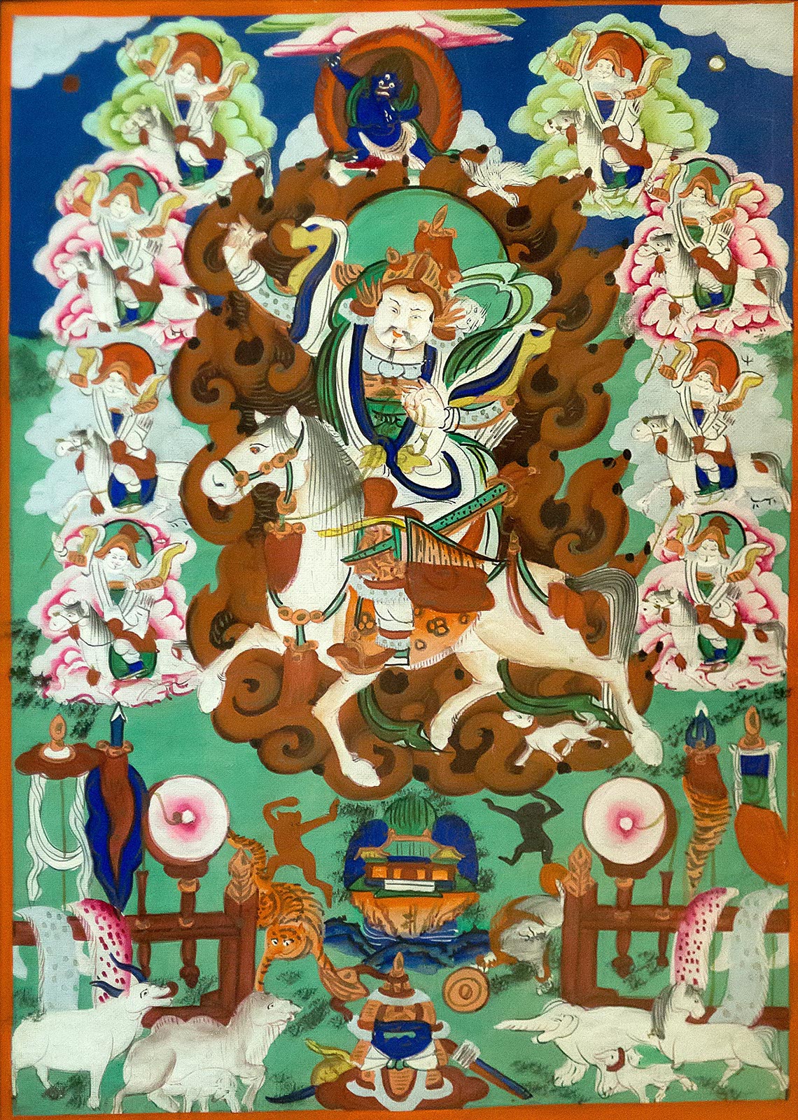 Фото №211483. ДАЛХА С ВОСЕМЬЮ СПУТНИКАМИ Монголия. Конец XIX века Холст, минеральные краски