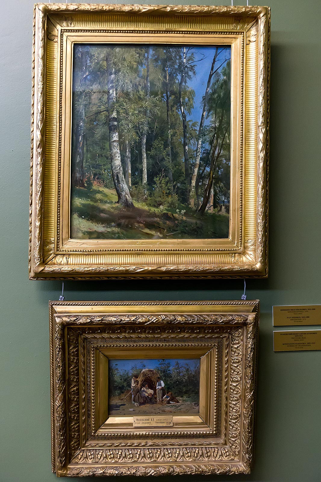 Фото №211864. ШИШКИН ИВАН ИВАНОВИЧ. 1832-1898 БЕРЕЗОВАЯ РОЩА 1870 / МАКОВСКИЙ КОНСТАНТИН ЕГОРОВИЧ 1839-1915 РАССКАЗЫ ДЕДА