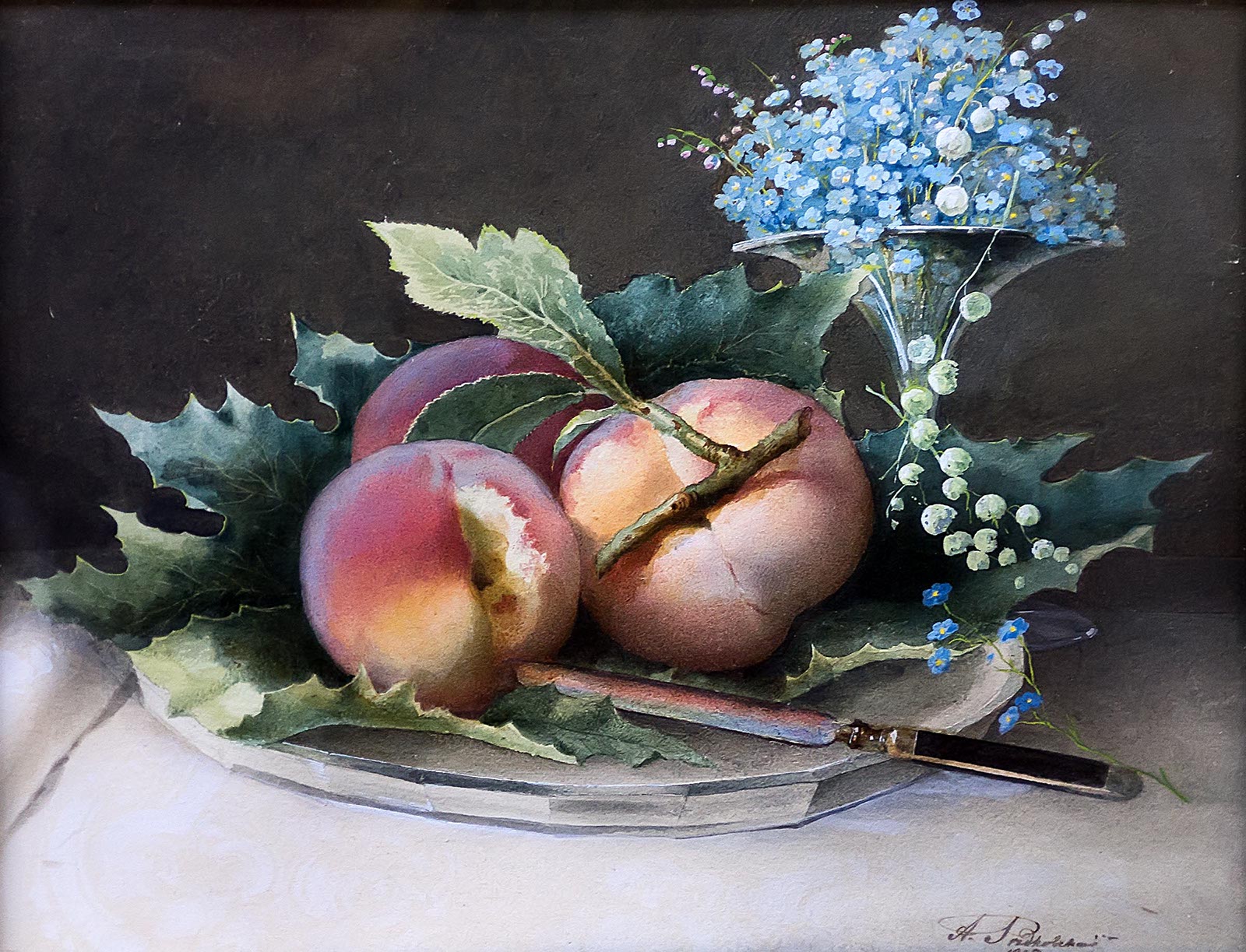 Фото №211942. РЕДКОВСКИЙ АНДРЕЙ АЛЕКСЕЕВИЧ. 1811-1909 ПЕРСИКИ И ЦВЕТЫ. 1895 Бумага на картоне, акварель Александр Фердинандович Мантель (1880, Санкт-Петербург — 1935, Москва)
