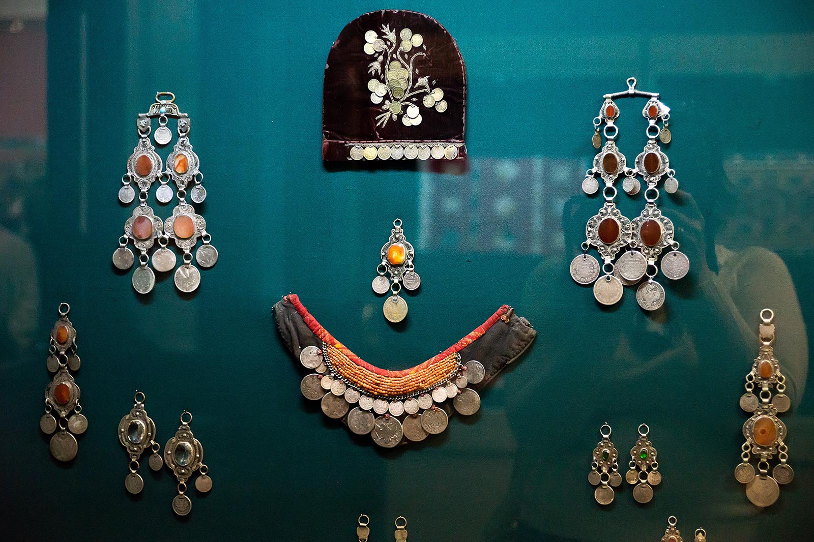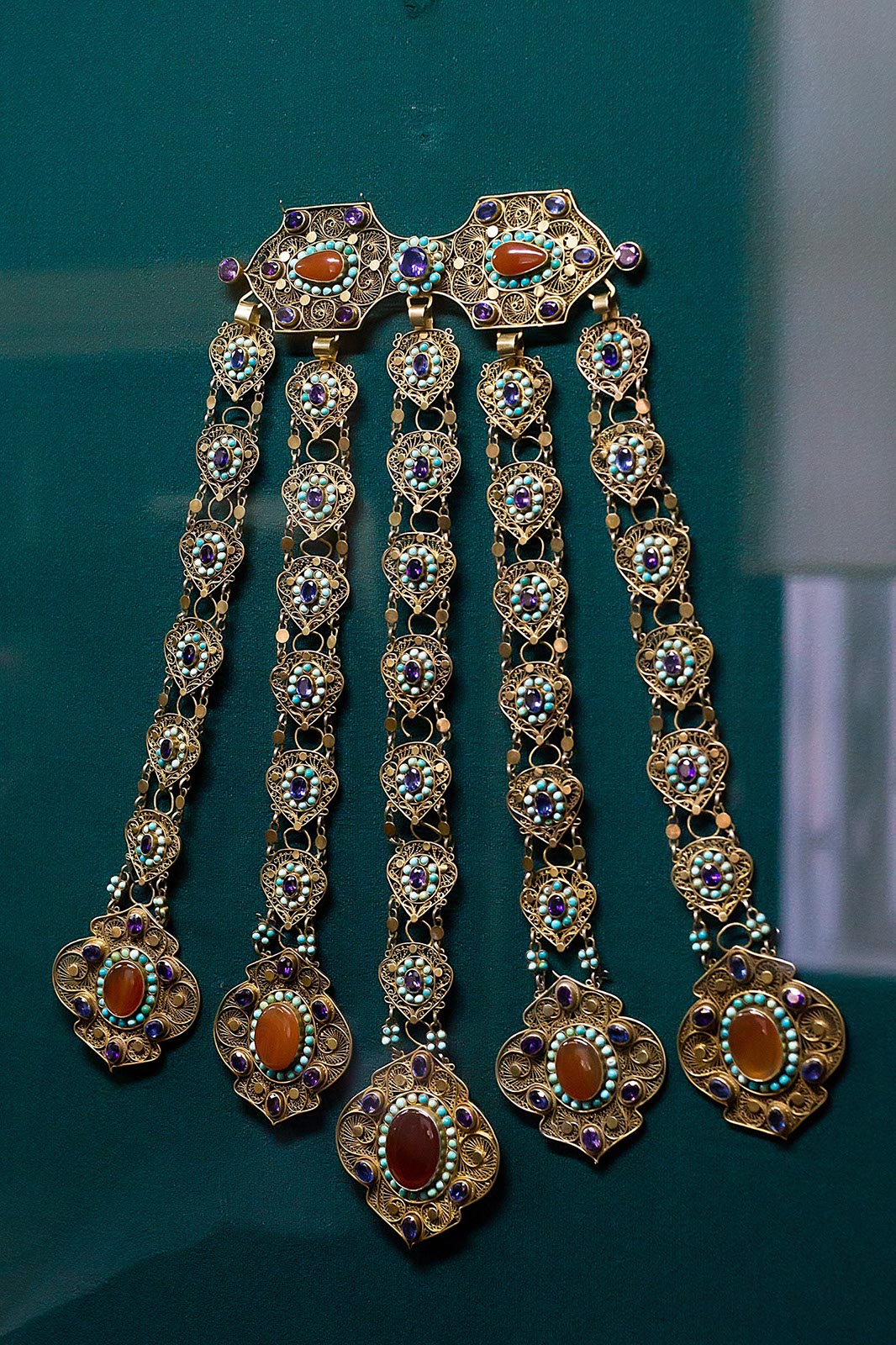 Фото №178011. Art16.ru Photo archiveТакже интересны реплики, относящиеся к ювелирному искусству XIX — качала XX вв» Особого внимания заслуживает сложное и многодельное украшение, характерное только для казанских татар и не имеющее аналогов у других народов под названием «яка чылбыры» (воротниковая цепь). В данном украшении около шестисот вставок из полудрагоценных камней.