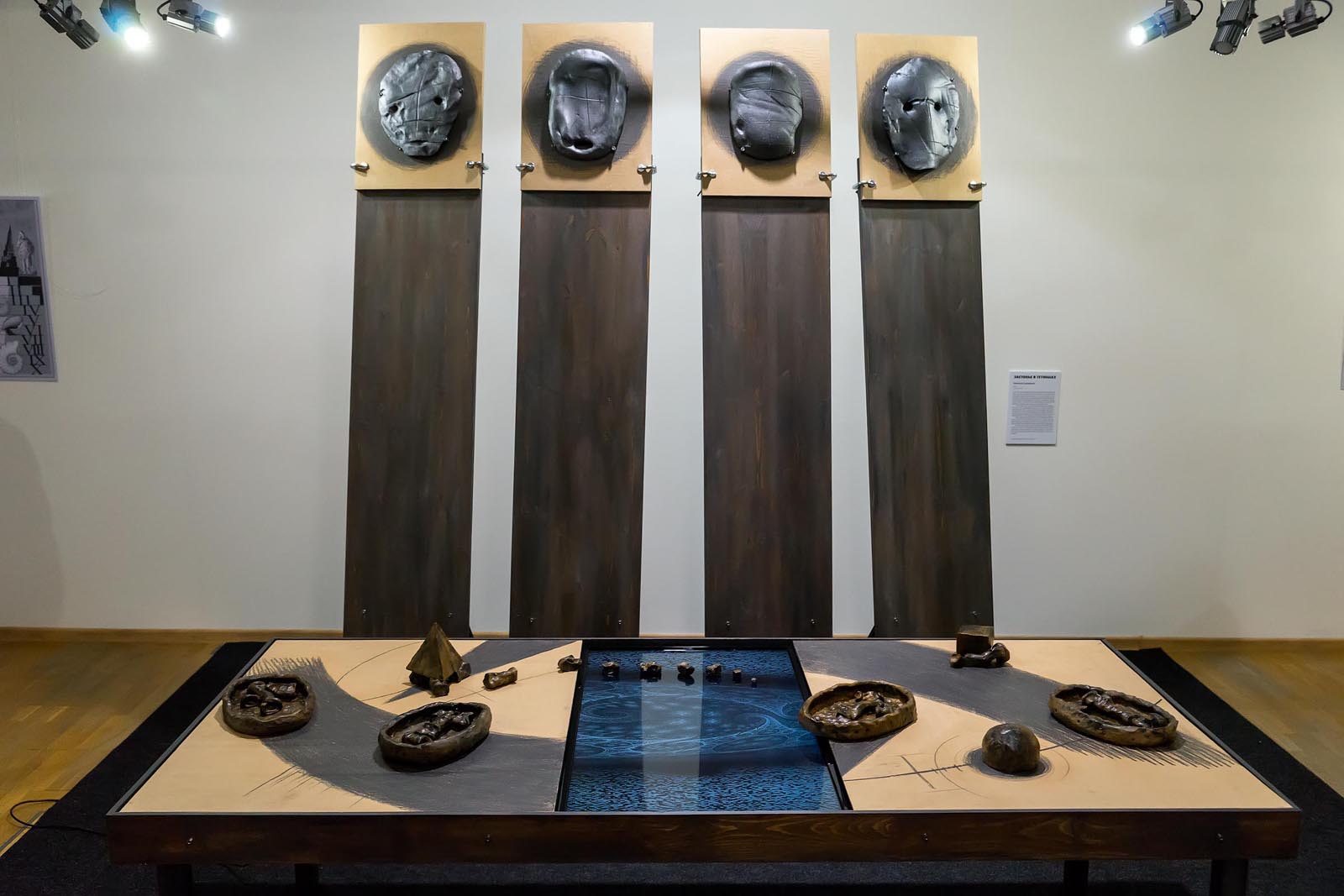 Фото №225821. КОСМОДЕМЬЯНСКИЙ ЧЕЛОВЕК. Михаил Волохов и Елена Зубцова. Москва. Инсталляция. 2014Темны и туманны казались порой для современников мысли русских просветителей-распредметников Козьмы и Дамиана. Как некогда в пифагорейской школе, в их образовательной системе в качестве символов использовались простые геометрические фигуры: квадраты, круги, треугольники, кресты.