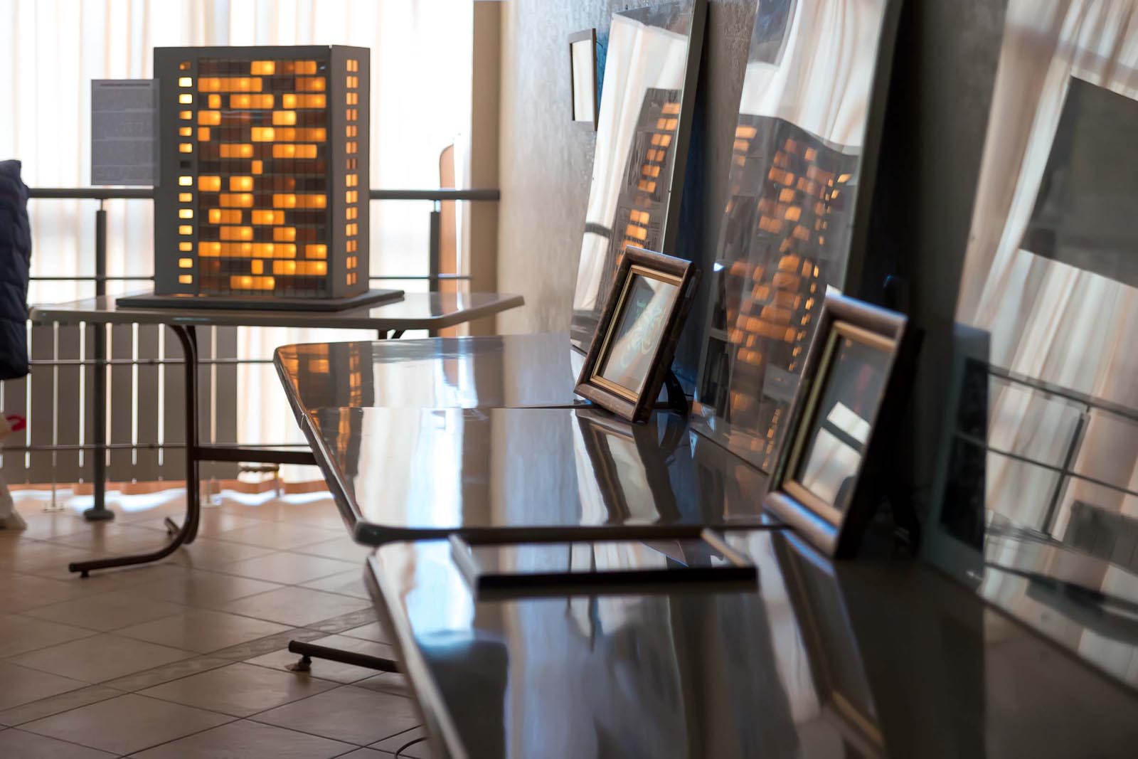 Фото №228248. Фрагмент экспозиции выставки НИИ "Прометей"на заднем плане: освещение небоскребов