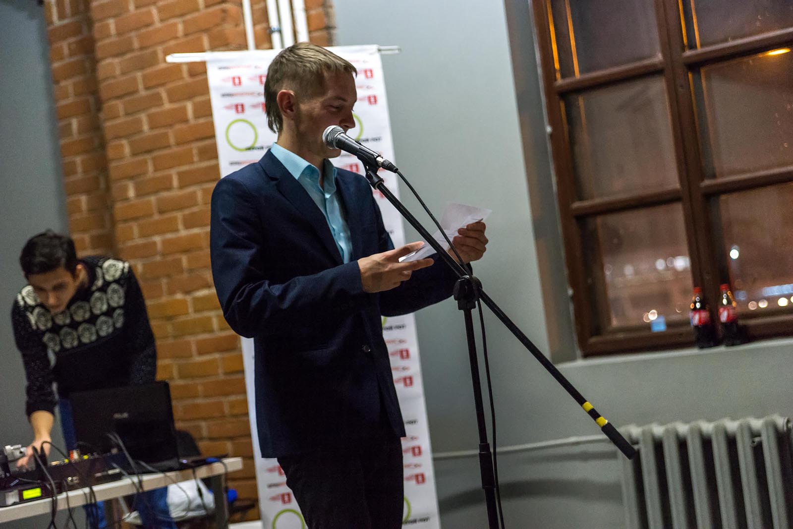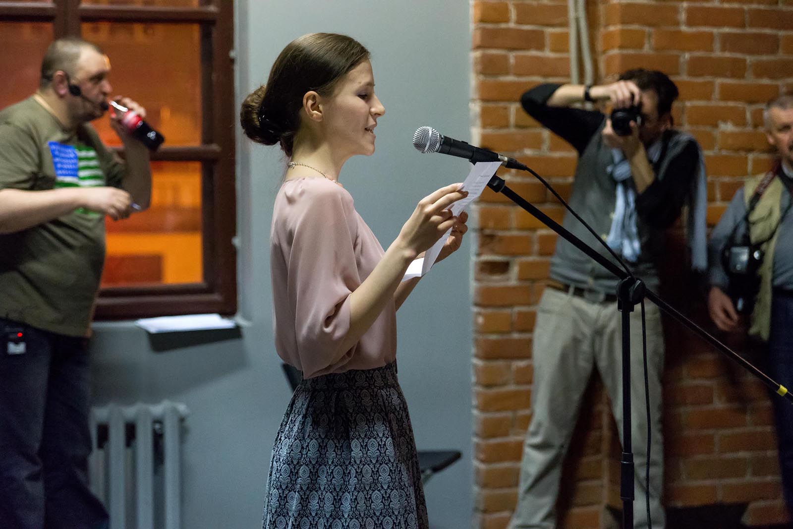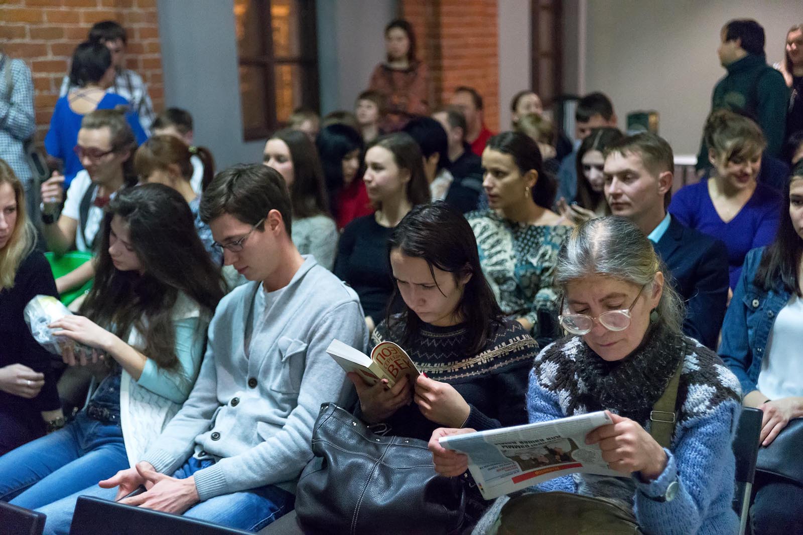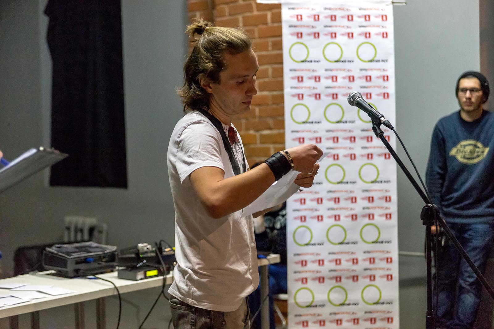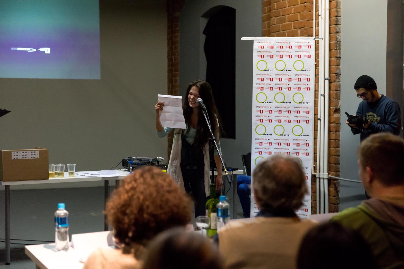 Фото №230936. Art16.ru Photo archiveВ ЦСК «Смена» к 19.00 зал наполнился участниками и болельщиками. Идейный вдохновитель и создатель фестиваля Михаила Фаустова ознакомил зрителей с правилами чемпионата, представил участников литературной битвы и судей.