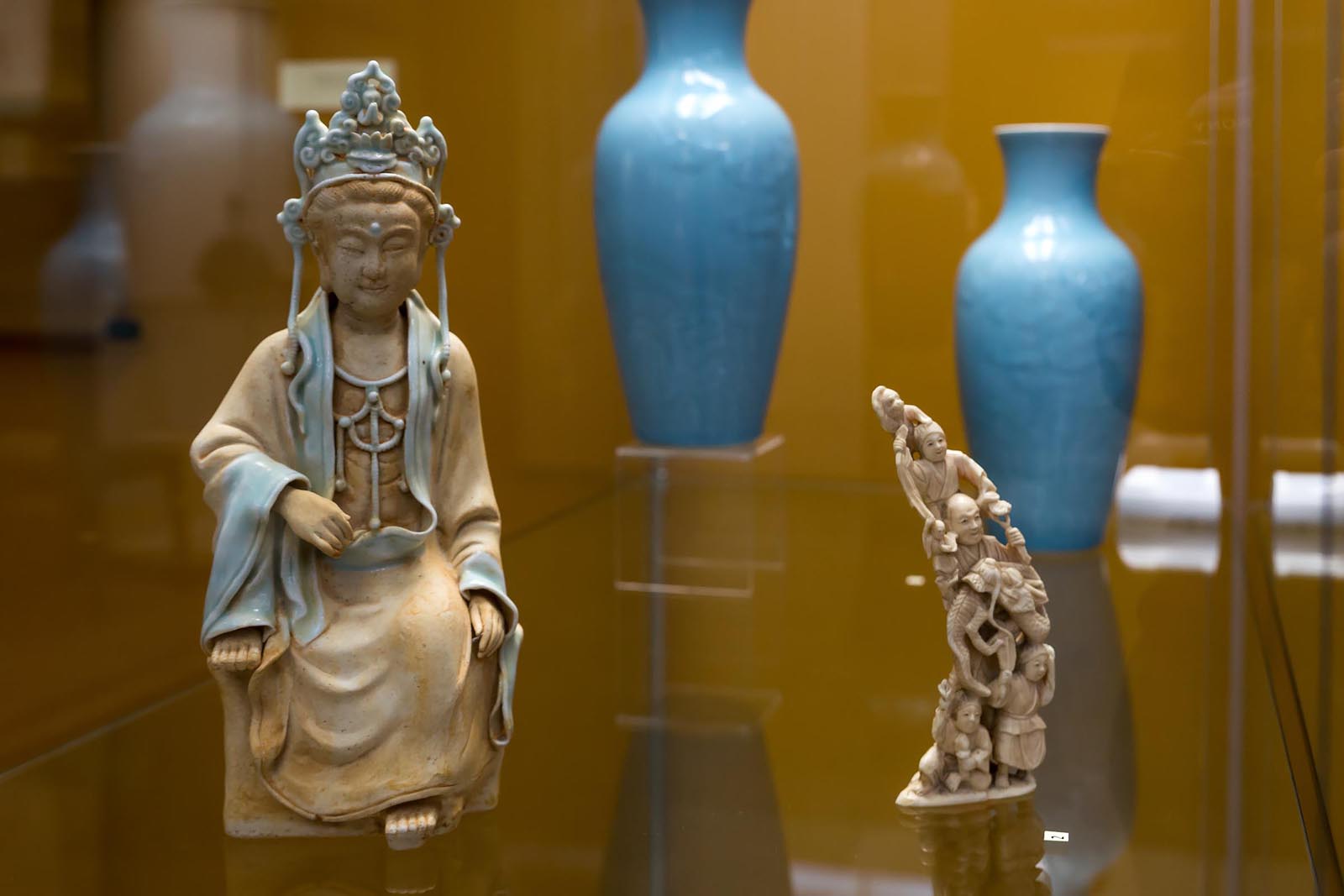 Пять выставочных залов Центра Эрмитаж-Казань вместили: фарфоровые вазы, чаши, стеклянные стаканы для кистей, бронзовые курильницы, скульптуры диски Би, жезлы Жу-и, инро, тушечницы и вазы из дерева, нефрита и другие редкие предметы. Свитки и вышивки на шелке и бумаге с уникальными орнаментами и изображениями — более ста предметов ДПИ Дальнего Востока от средних веков до современности.