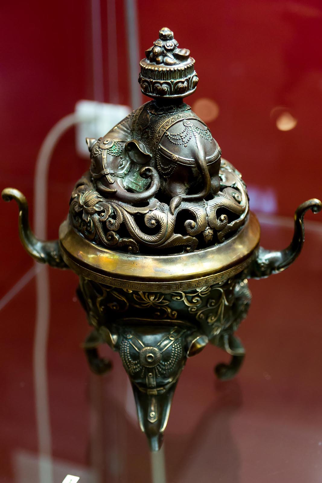Медь, красный лак, резьба