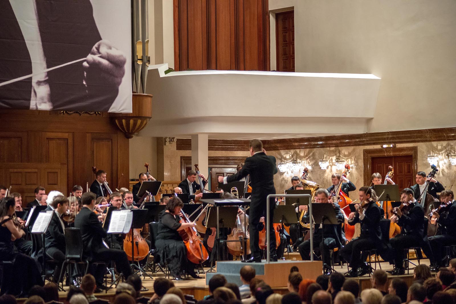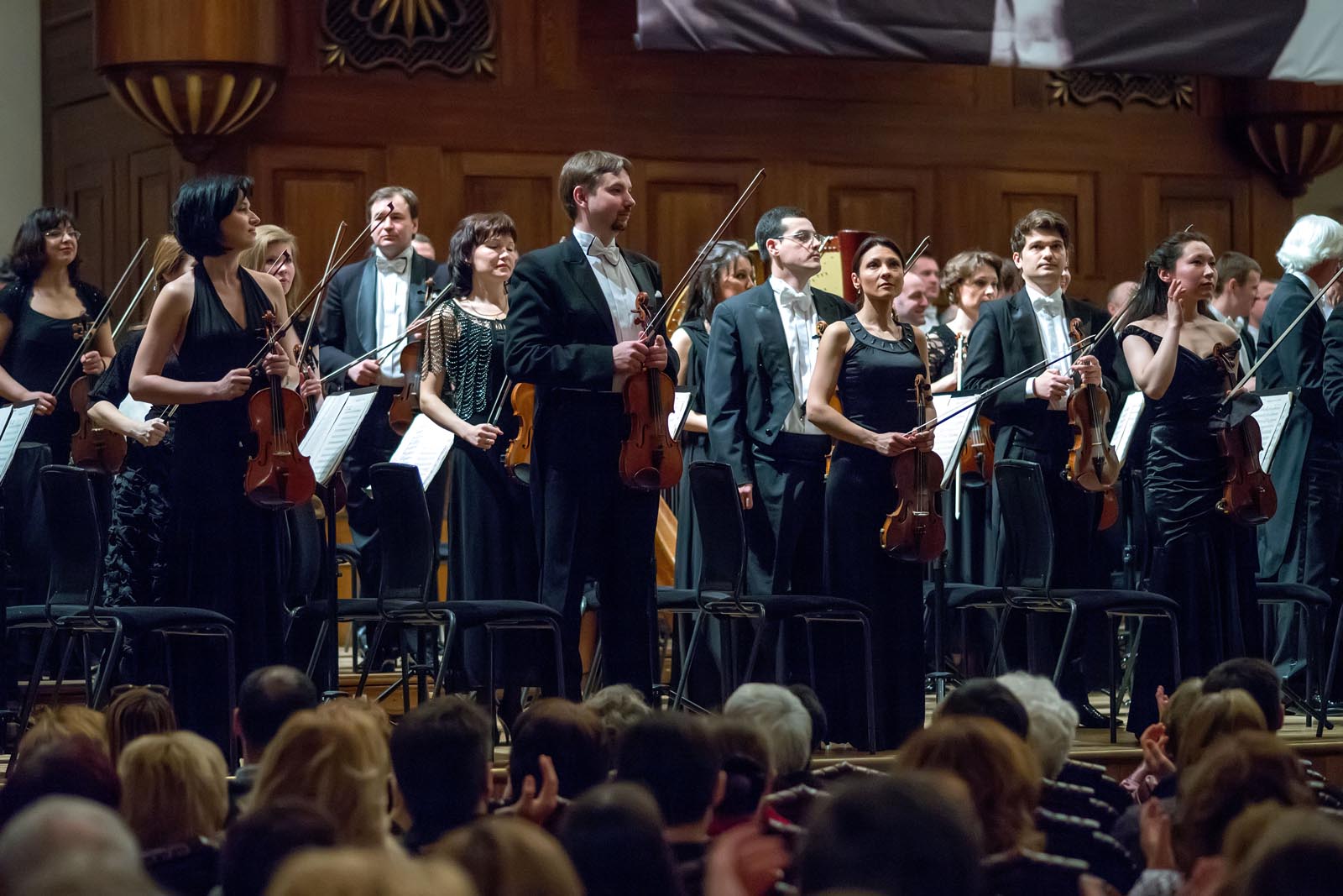 Несмотря на сложность для восприятия музыки, заявленной в программе вечера, Большой концертный зал был переполнен. Слушатели сидели на лестницах и даже просто стояли.