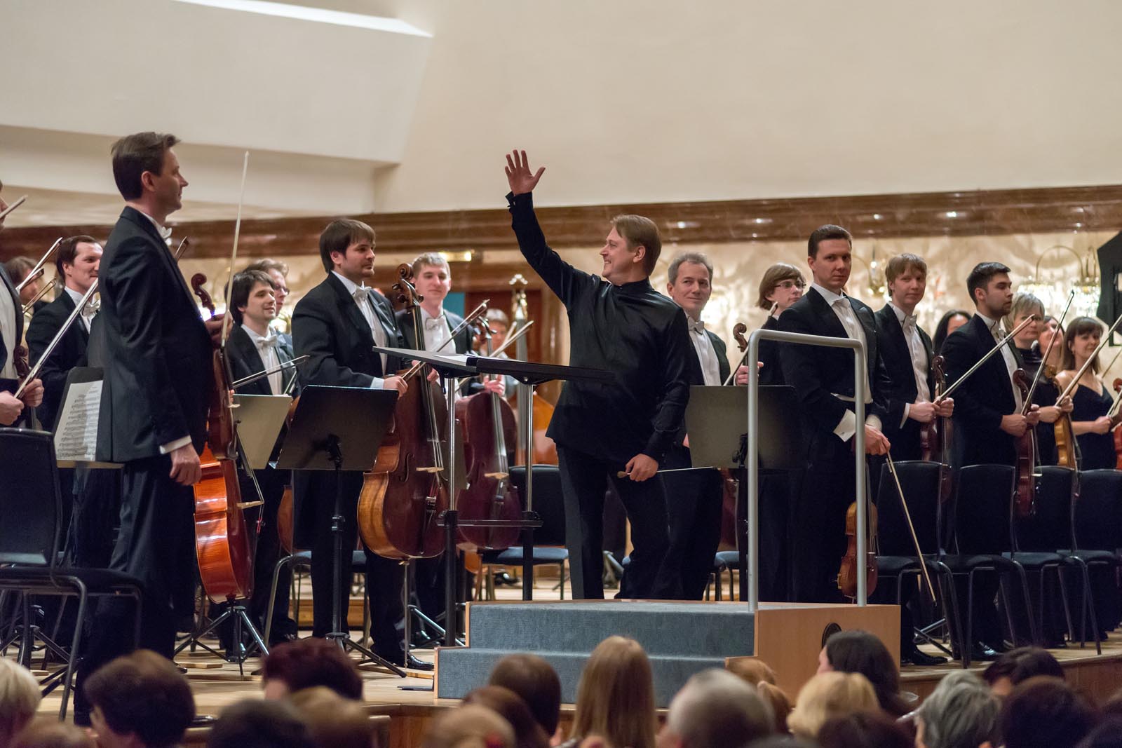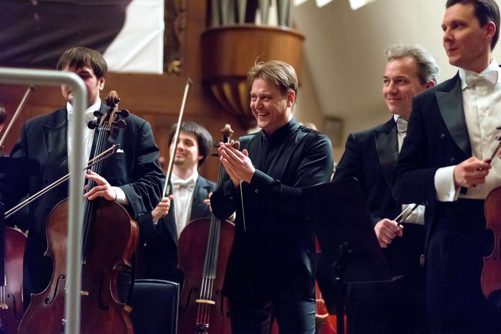 Фото №267213. Art16.ru Photo archiveВо втором отделении оркестр под управлением Александра Сладковского с успехом исполнил Пятую симфонию Чайковского — любимейшее произведение Натана Рахлина. От Четвёртой симфонии её отделяет почти 10 лет. В ней подняты глубокие философские вопросы и по-прежнему сильна тема рока, но это произведения отличается от других отступлением автора от лирико-психологического направления и характеризуется соединением драмы и трагедии в одно целое. «Мотив всех умствований — есть чисто личное чувство уходящей жизни и страх смерти»,- так характеризовал автор своё произведение. Этот период жизни композитора был эмоционально насыщенным и напряженным, он много путешествовал и концертировал в крупных городах Европы. Премьера Пятой симфонии состоялась 5 ноября 1888 года в Петербурге, дирижировал сам автор. Композитор и критики остались недовольны. Чайковский так писал о ней:«Сыграв мою новую симфонию два раза в Петербурге и раз в Праге, я пришел к убеждению, что симфония эта неудачна. Есть в ней что-то такое отталкивающее, какой-то излишек пестроты и неискренности, деланности. И публика инстинктивно сознает это. Мне было очень ясно, что овации, коих я был предметом, относились к моей предыдущей деятельности, а сама симфония неспособна увлекать или, по крайней мере, нравиться. Сознание всего этого причиняет мне острое, мучительное чувство недовольства самим собою. Неужели я уже, как говорится, исписался, и теперь могу только повторяться и подделываться под свою прежнюю манеру?».