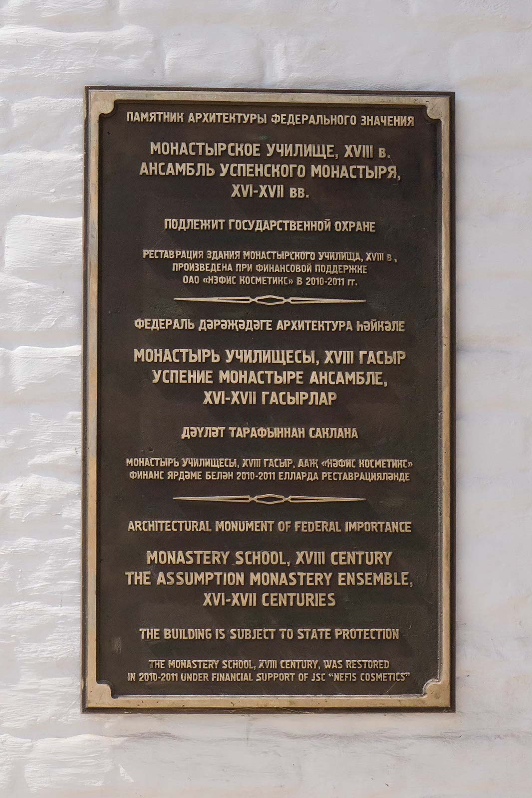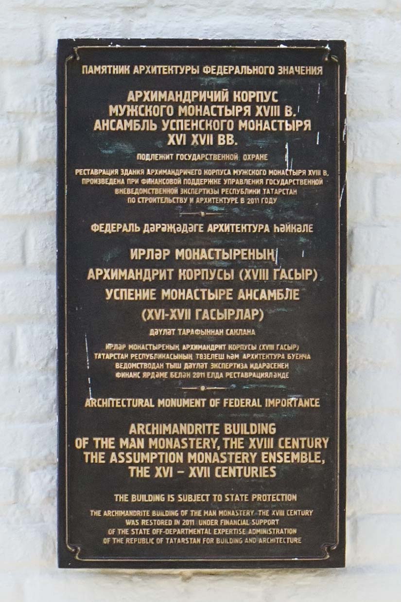 Фото №104634. Табличка на здании Архимандричего корпуса мужского монастыря XVIII, Свияжск
