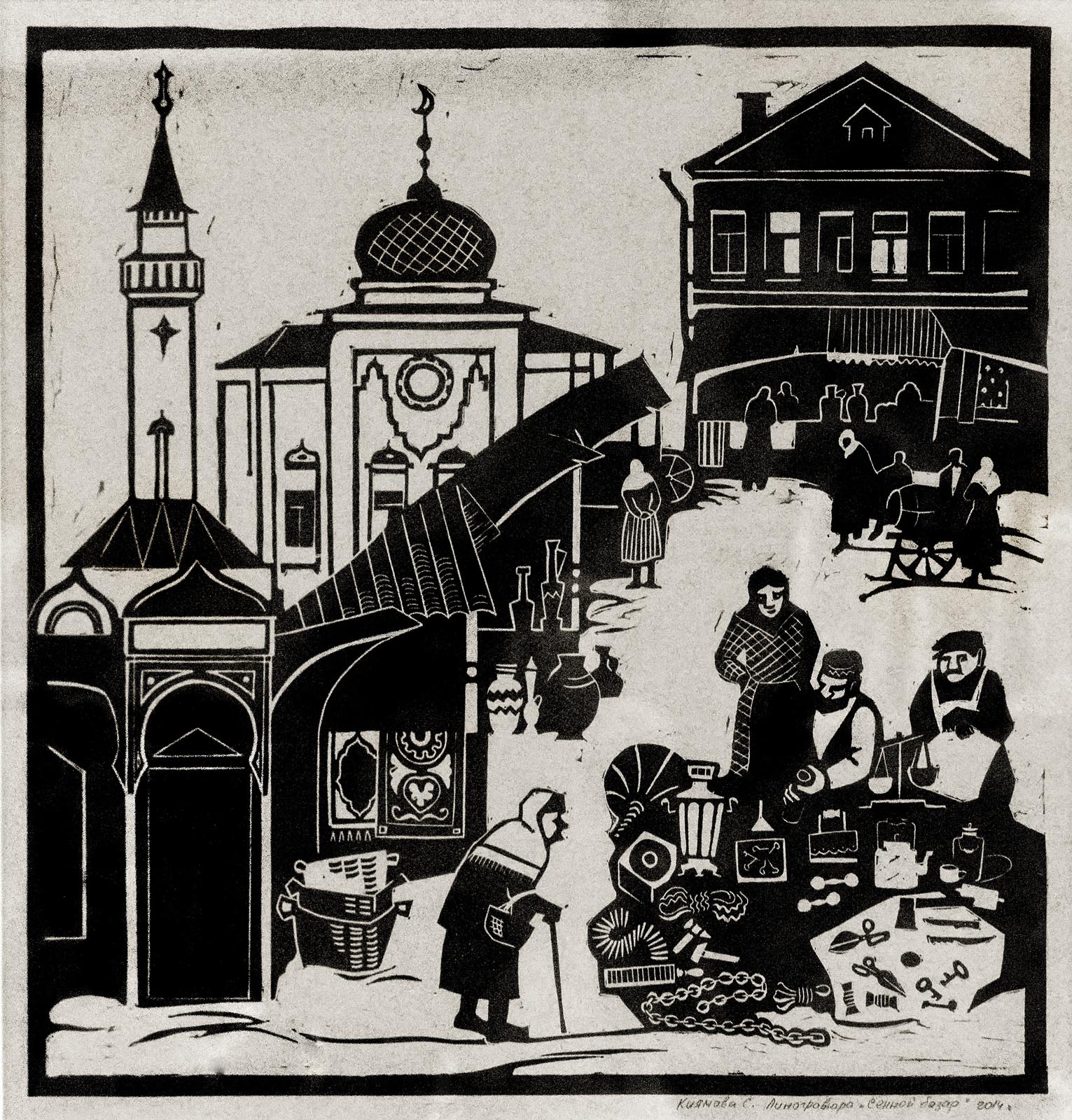Фото №371430. 1СИЯМОВА СВЕТЛАНА. Из серии «СТАРАЯ КАЗАНЬ». 2014 Бумага, линогравюра