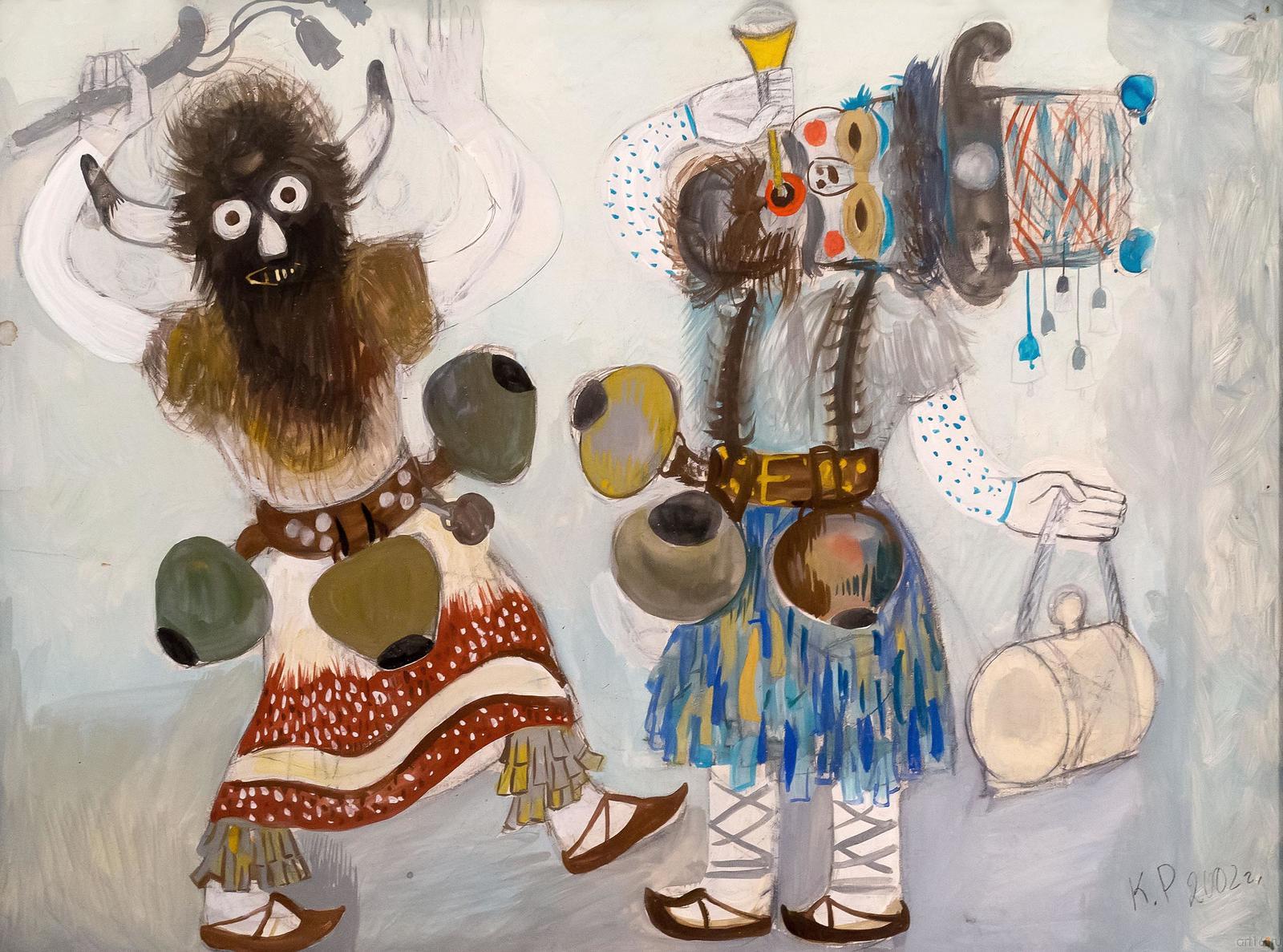 Фото №766185. КИЛЬДИБЕКОВ Р.А. 1934 ДВА КУКЕРА. 2002Картон, темпера Собственность автора