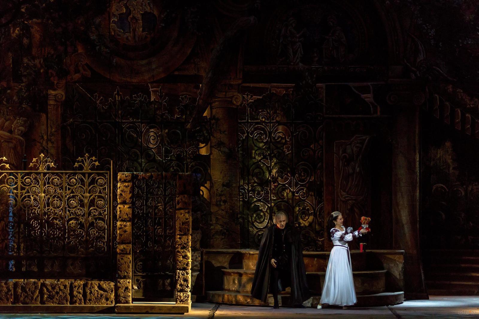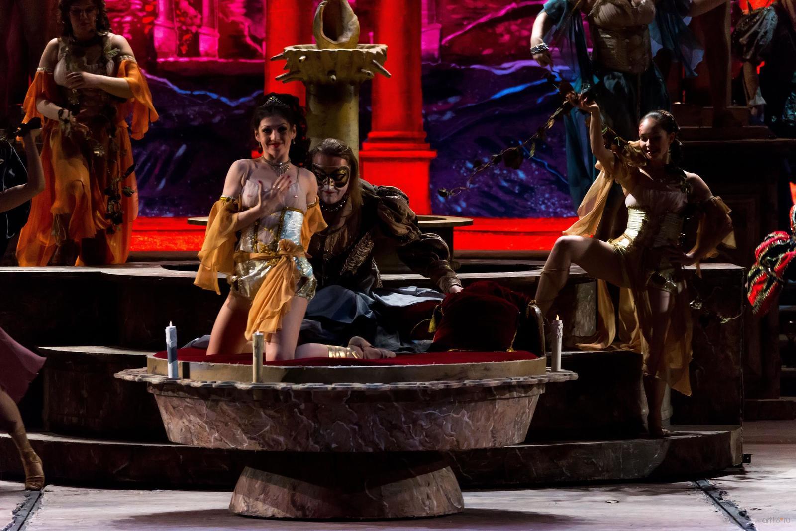 Фото №788010. Art16.ru Photo archiveВ постановке хорошо смотрелась Венера Протасова (ТАГТОиБ им. М.Джалиля) в роли Джильды, которая скромными по силе вокальными средствами создала изящную линию роли, наглядно демонстрирующую эволюцию героини, от невинной, мечтательной девушки к личности, совершающей самопожертвование ради недостойного возлюбленного.