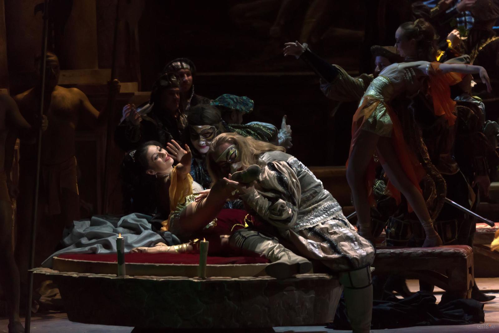 Фото №787943. Art16.ru Photo archiveКостюмы и сценография спектакля созданы художниками Андреем Злобиным и Анной Ипатьевой (г. Киев). Необходимо отметить безупречный стиль, цветовое решение, использование современных технологий в создании декораций и костюмов, освещении сцены. В тоже время это добротный традиционный спектакль, который, несомненно, будет пользоваться успехом у публики. Красивые костюмы имитируют эпоху, инсценировка помогает полному восприятию могущественной и страстной музыки Верди.