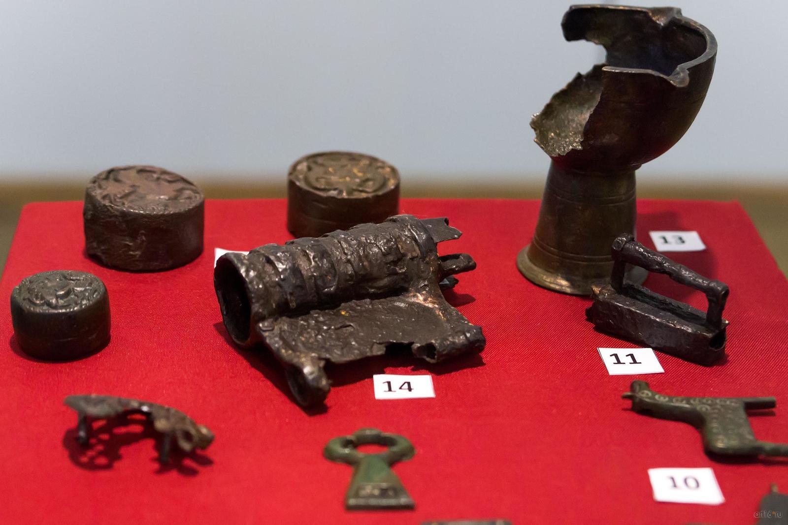 95 монет эпохи Николая II; клад, содержимое которого — 160 серебряных слитков, а также серебряные браслеты и железный наконечник стрелы — датируется XIII веком; предметы XIV века, найденные на территории городища в 2010 — 2012 годах: серьги, перстень, подвески, браслеты, слитки, булавки, коранницы.