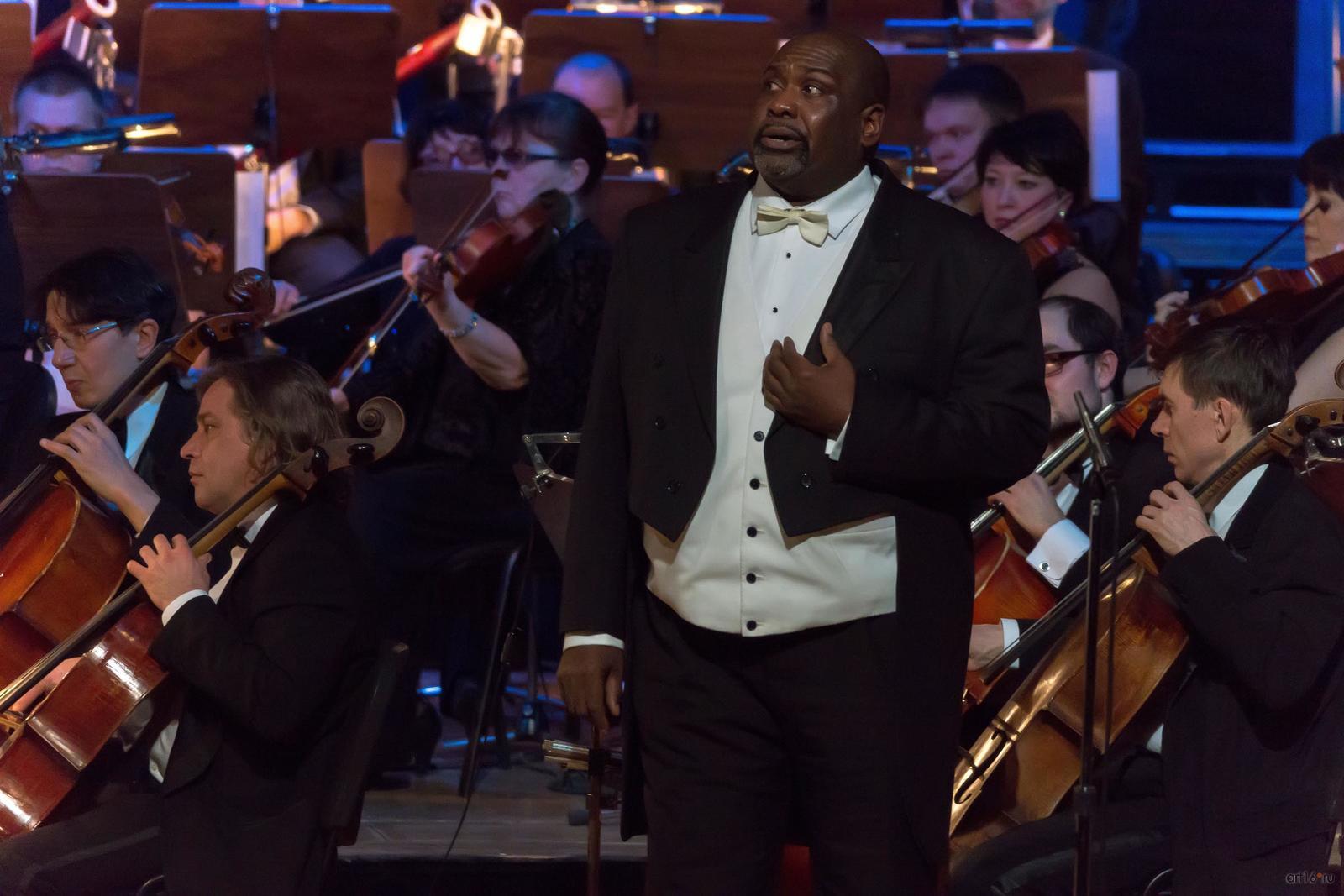 Фото №789295. Art16.ru Photo archiveЗа дирижёрским пультом его сменял Ренат Салаватов. Номеров из репертуара Ф. И. Шаляпина было не много. Ария Отелло из одноимённой оперы Дж. Верди, мастерски, блестяще исполнена певцом из Великобритании Рональдом Саммом. Публика одарила этого мэтра долгой овацией и криками браво.