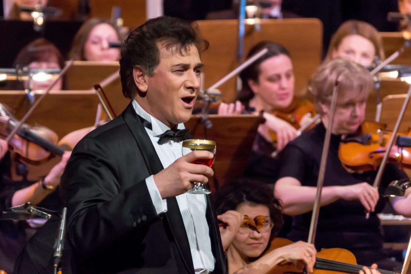 Фото №789283. Art16.ru Photo archiveКонцерт начался с любимой народной песни великого певца «Эх, дубинушка, ухнем!», которую исполнил мужской хор театра под управлением хормейстера Любови Дразниной. Хор и оркестр в этот вечер царили на подмостках, так что можно было наконец-то рассмотреть музыкантов, обычно пребывающих на протяжении действия в оркестровой яме. Оркестр оставил неизгладимое, приятное впечатление, выступая как в качестве аккомпанемента певцам с мировой известностью, так и в сольных номерах. Даже бравурные мелодии под управлением маэстро Марко Боэми звучали необычайно объёмно и полно, не говоря о виртуозных, изящных, камерных номерах, в которых маэстро выглядит непревзойдённым.