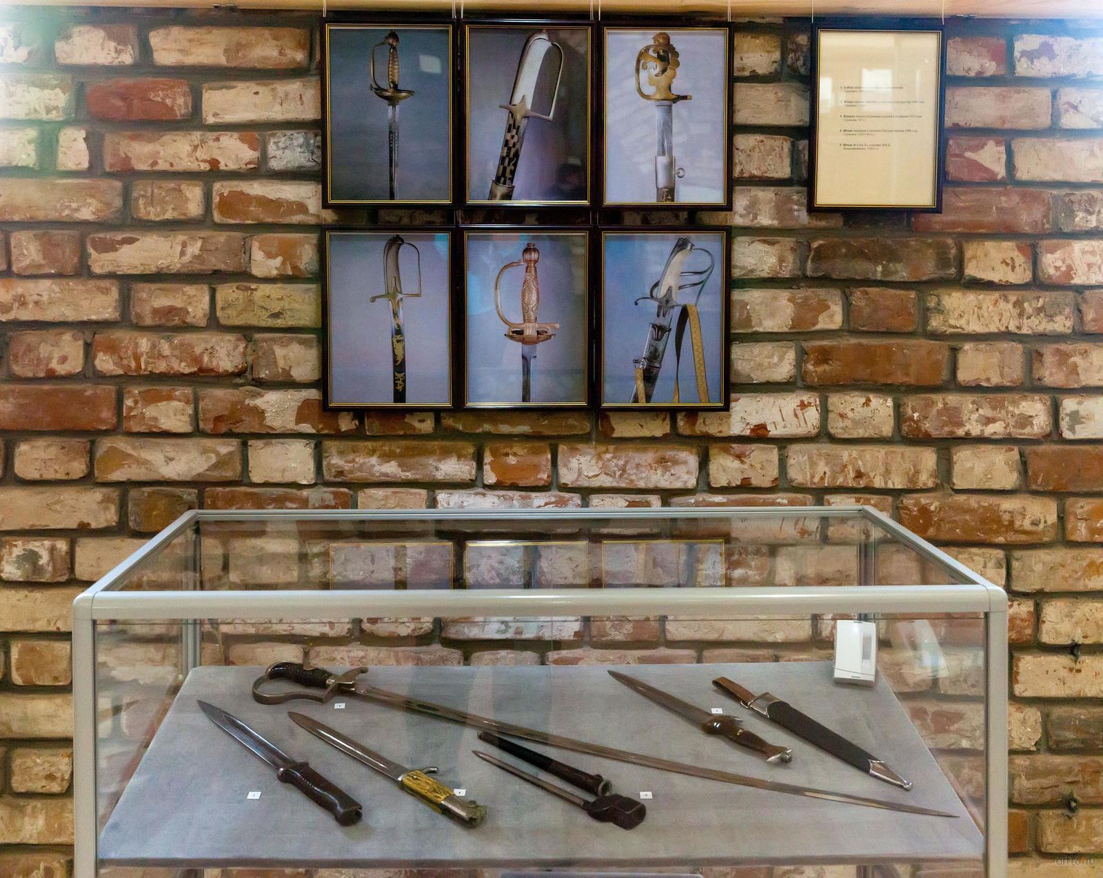 Фото №794613. Art16.ru Photo archiveНа первом этаже музея выстроена экспозиция, повествующая о холодном оружии: клинковое оружие российских и европейских мастеров: сабли, шашки, тесаки, ножи, кинжалы, а также штыки к российским, французским, итальянским, германским, японским и английским винтовкам. Стены украшают фотографии коллекционного оружия тульских мастеров (XVIII–XIX) из собрания Эрмитажа.