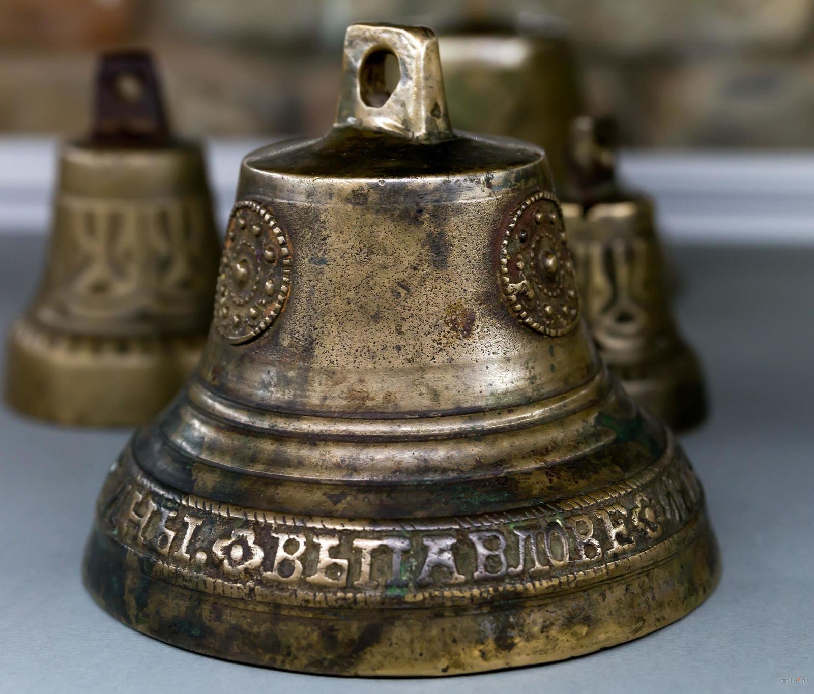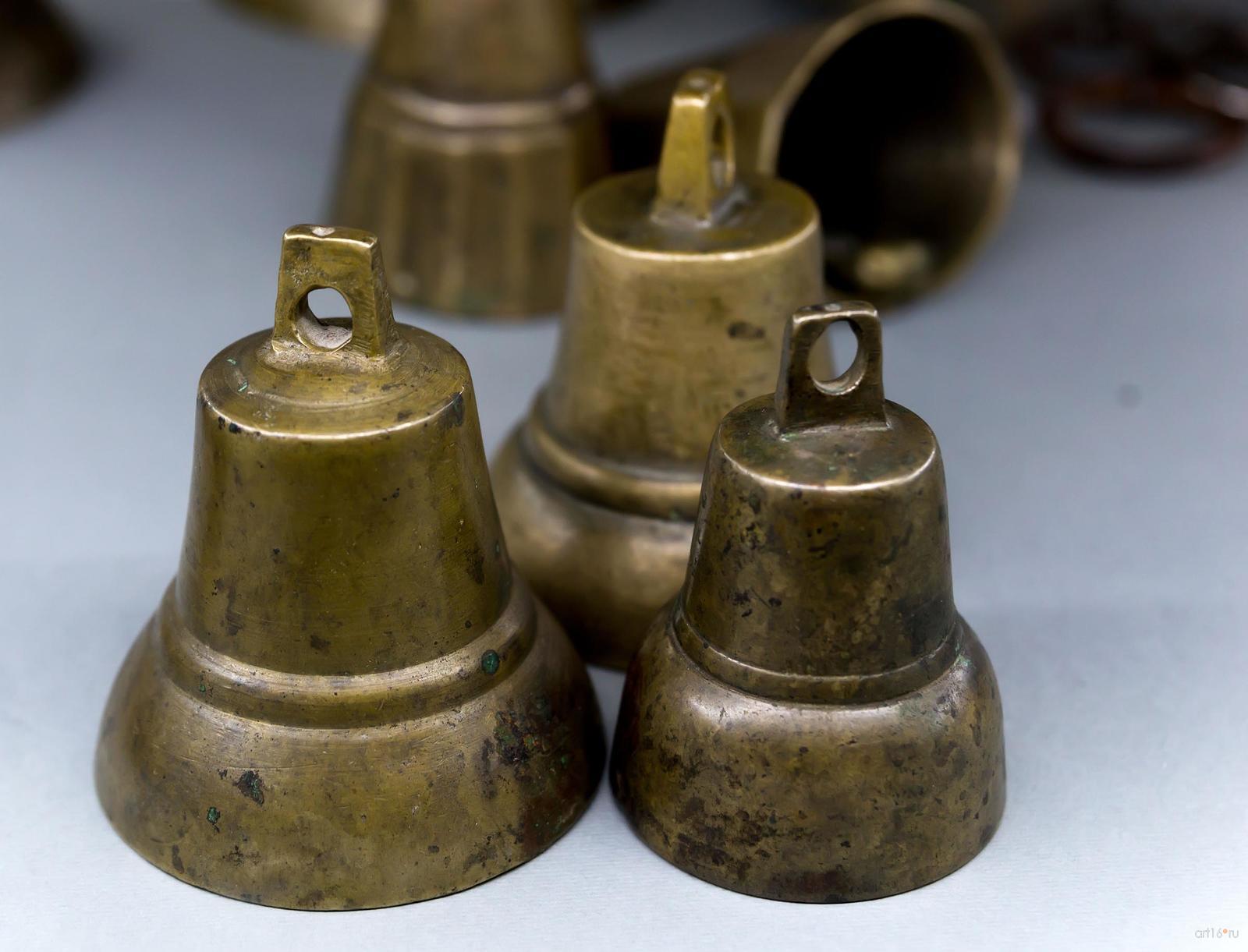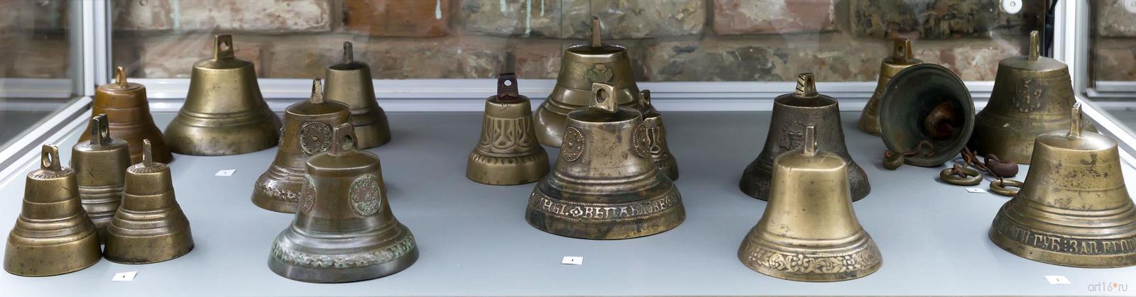Фото №794673. Art16.ru Photo archiveКоллекция колокольчиков представлена в двух витринах, размещенных на втором этаже. В экспозиции можно увидеть поддужные бронзовые колокольчики (подвешенные под дугой над головой коренника почтовой или курьерской упряжи — тройки), отлитые в конце XIX — начале XX века, чаще всего, пурехскими мастерами (Нижегородская губерния). На «юбке» русского колокольчика мы можем видеть имена, изречения, пословицы и поговорки. Также тексты на колокольчиках рассказывают о мастере, месте и дате его изготовления, причине выпуска.