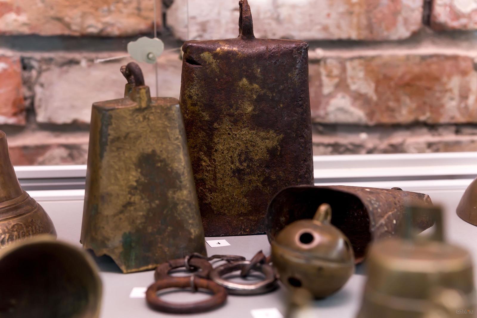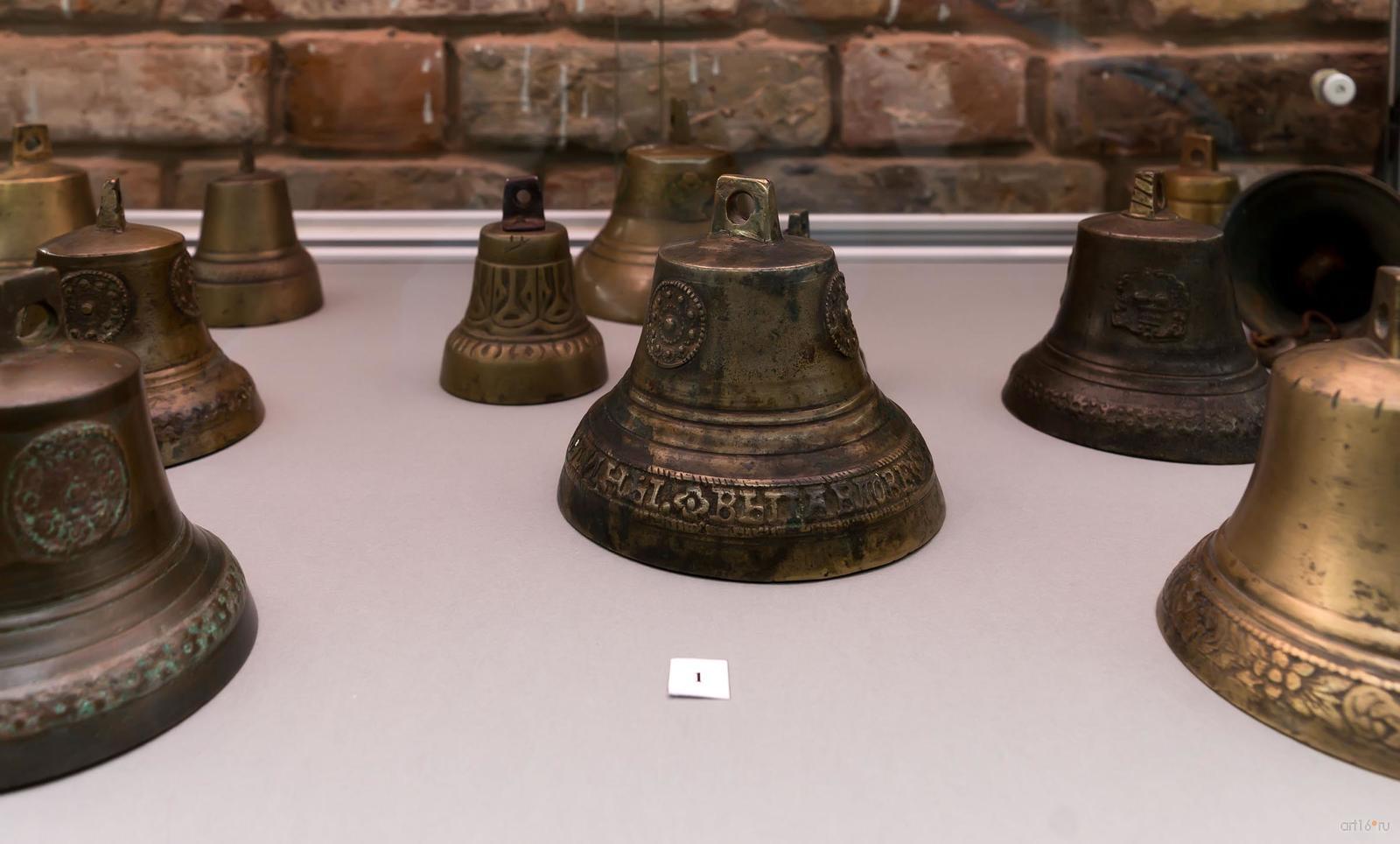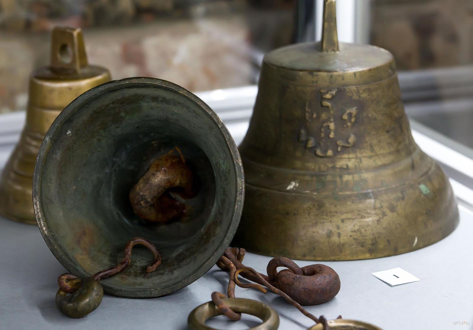 Фото №794673. Art16.ru Photo archiveКоллекция колокольчиков представлена в двух витринах, размещенных на втором этаже. В экспозиции можно увидеть поддужные бронзовые колокольчики (подвешенные под дугой над головой коренника почтовой или курьерской упряжи — тройки), отлитые в конце XIX — начале XX века, чаще всего, пурехскими мастерами (Нижегородская губерния). На «юбке» русского колокольчика мы можем видеть имена, изречения, пословицы и поговорки. Также тексты на колокольчиках рассказывают о мастере, месте и дате его изготовления, причине выпуска.