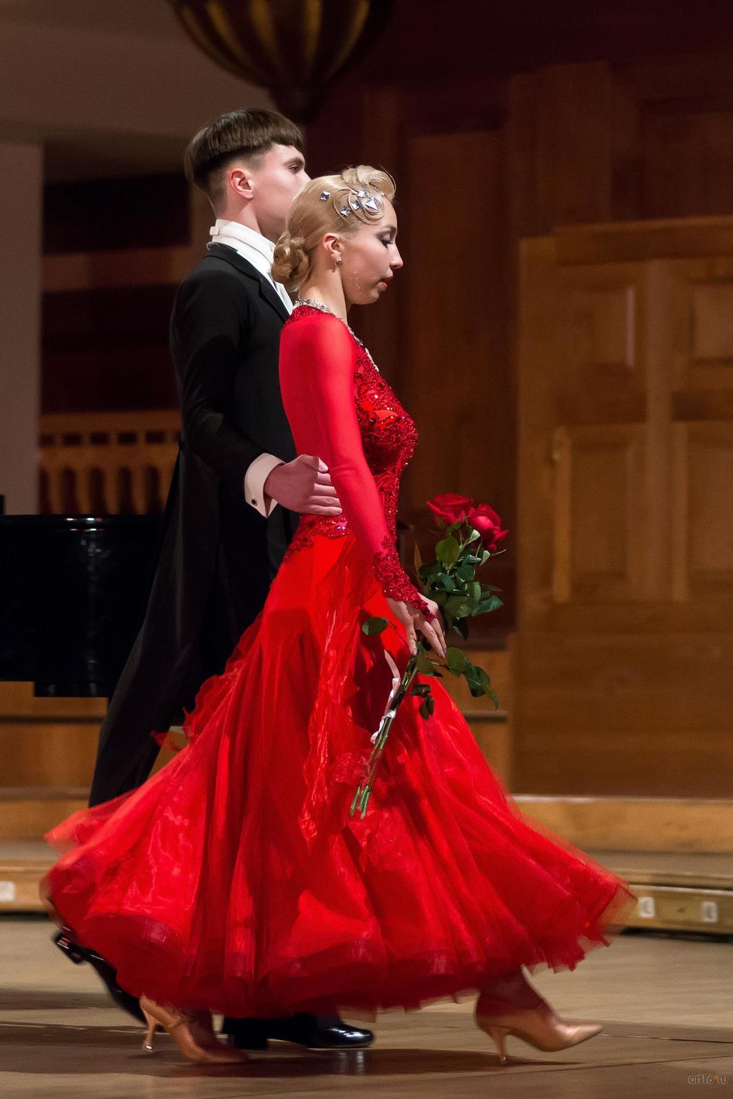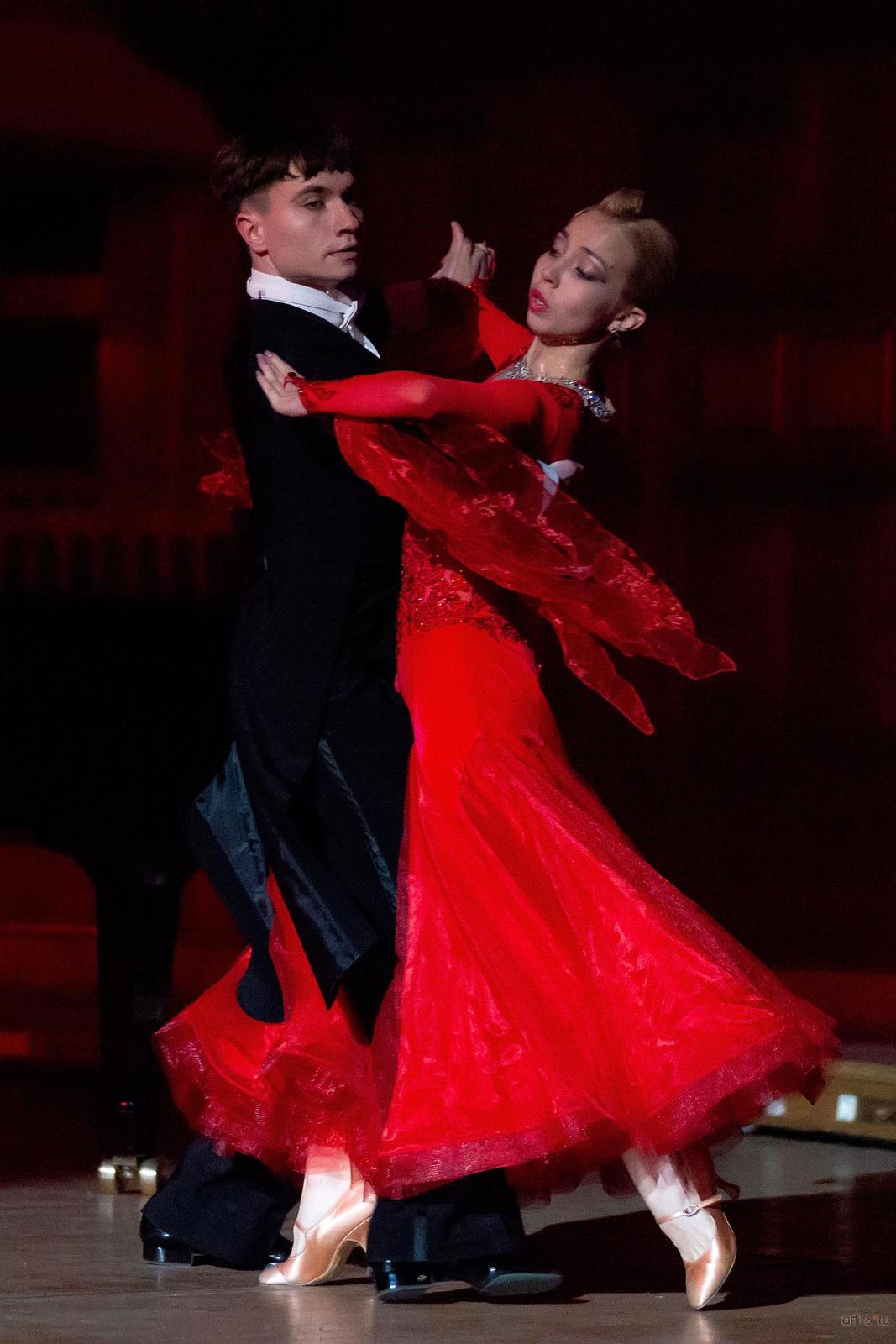 Фото №798690. Art16.ru Photo archiveСледующим был танцевальный номер в исполнении дуэта спортивных бальных танцев в составе Никита Петухов и Дарья Иванова. Бальное-спортивное, сценическое танго отличается от аутентичного аргентинского танго, зародившегося в конце XIX века в бедных эмигрантских кварталах Буэнос-Айреса, как небо от земли. Их роднит только жанр. Настоящее аргентинское танго основано на танцевальной импровизации, на хорошем взаимопонимании, обмене энергиями партнёров, и состоит из набора традиционных базовых движений, из которых как из причудливой мозаики складывается танец. Жаль, этим вечером зрители чуда не увидели. Пара выглядела очень эффектно в своих великолепных костюмах, но их танец по стилистике был далёк от того, что танцуют на улицах Буэнос-Айреса. Кстати, сейчас мир заново переживает всплеск интереса к этому танцу. Его танцуют в барах, кафе, на мостовых под открытым небом практически по всему Американскому континенту, в Старом Свете, множество поклонников у танго в Японии и Китае.