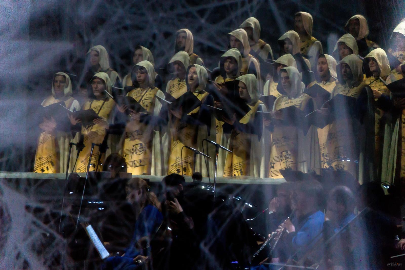 Фото №807647. Art16.ru Photo archiveПостановка была задумана В. В. Васильевым несколько десятилетий назад, как грандиозное представление на площади Святого Петра в Ватикане. Но этому замыслу не удалось воплотиться в первоначальном виде, блестящая идея осуществилась на сцене казанского оперного театра к огромной радости казанской публики.