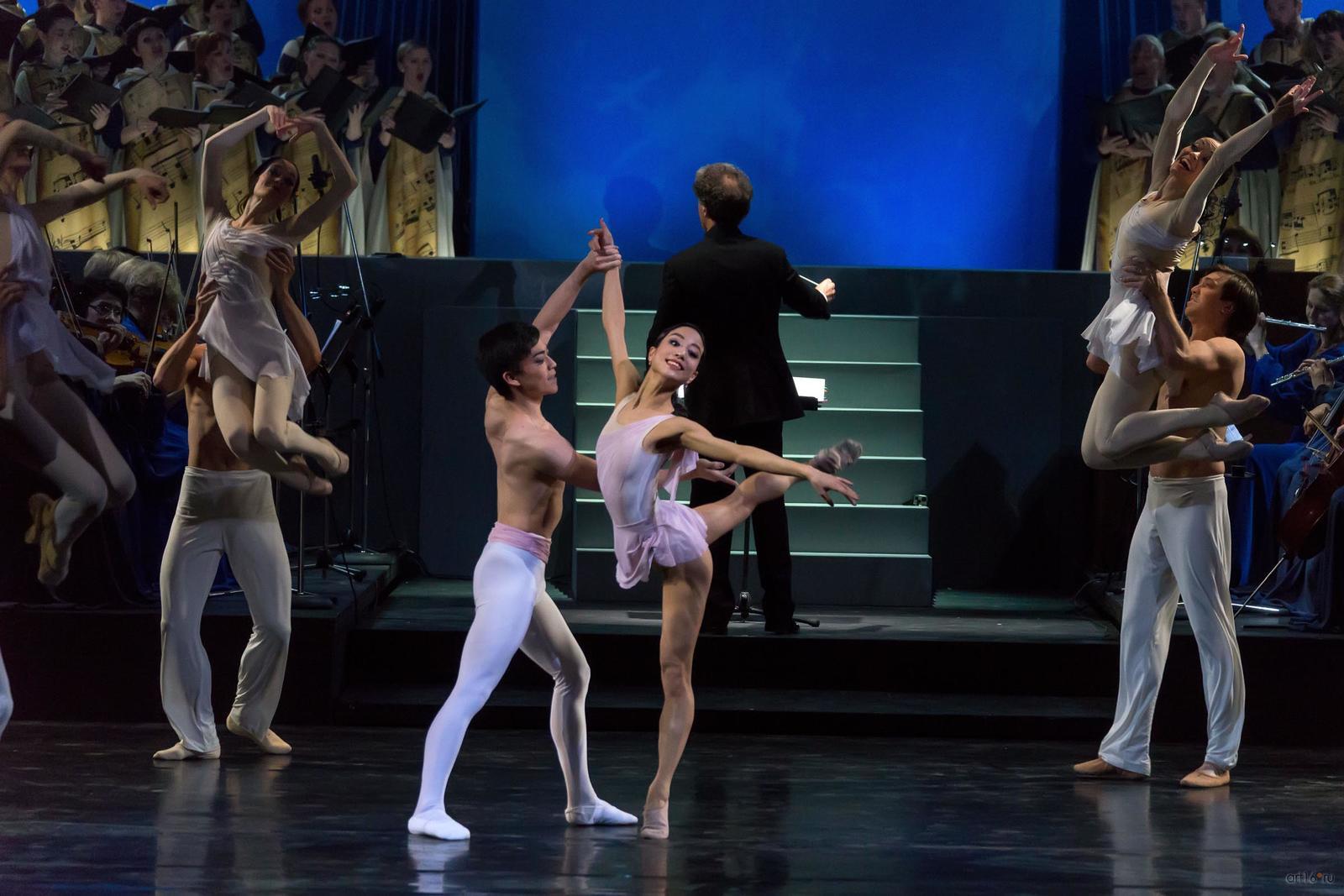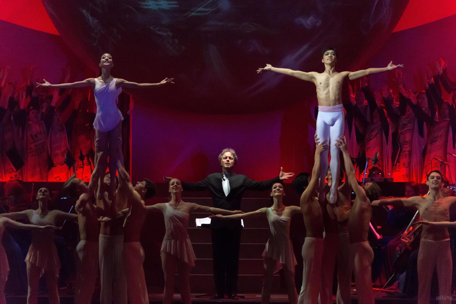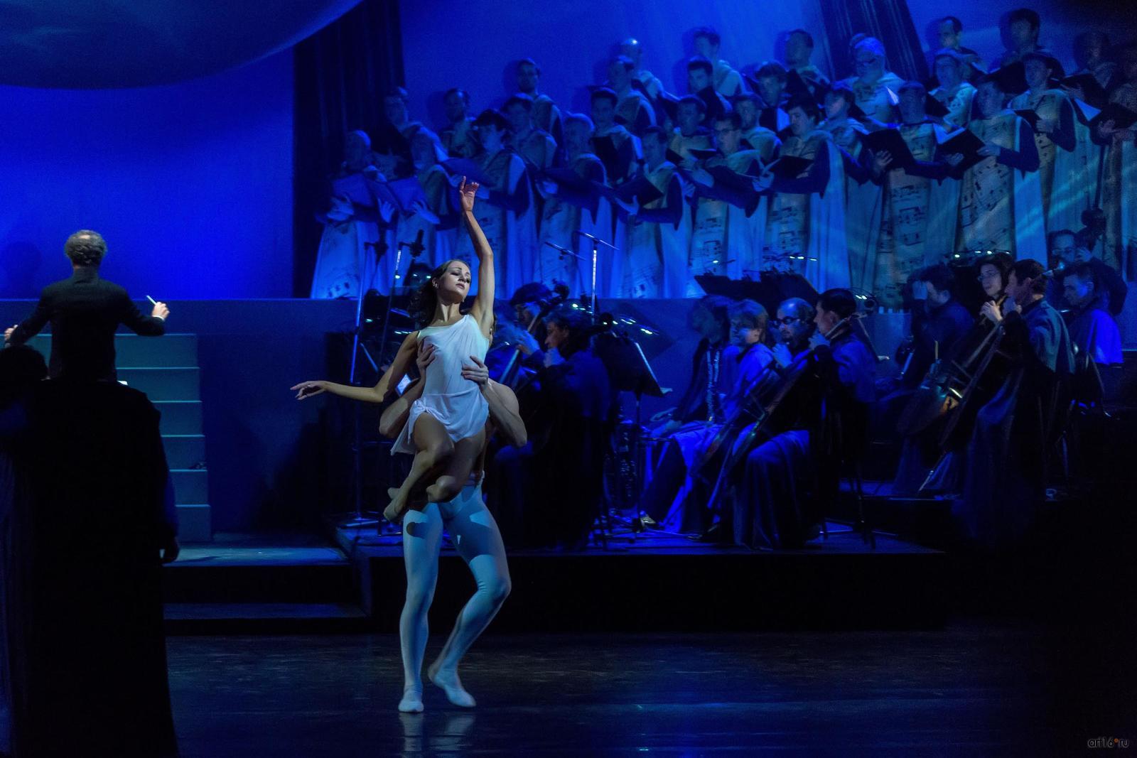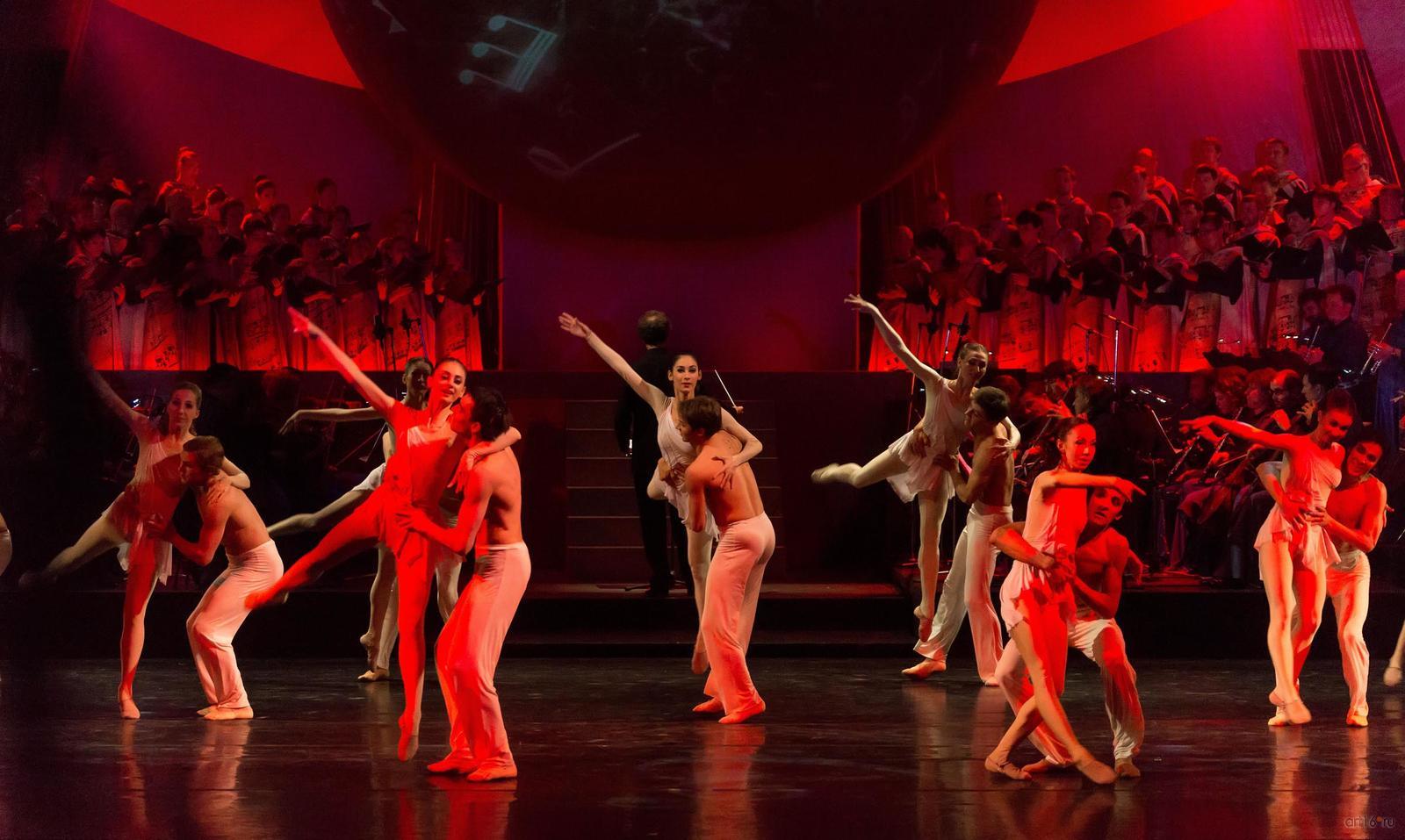 Фото №807768. Art16.ru Photo archiveЗритель с первых минут втягивается в волшебную медитацию, с помощь музыки и танца проникая в тайны мироздания и вселенной. Звучит хвалебная ода доброму и животворящему началу, каждый присутствующий ощутит на себе благотворное влияние великого музыкального творения, танцевальное представление, несмотря на всю простоту, полно искренности, природной пластики и органично вплетающейся в прелестную ткань спектакля.