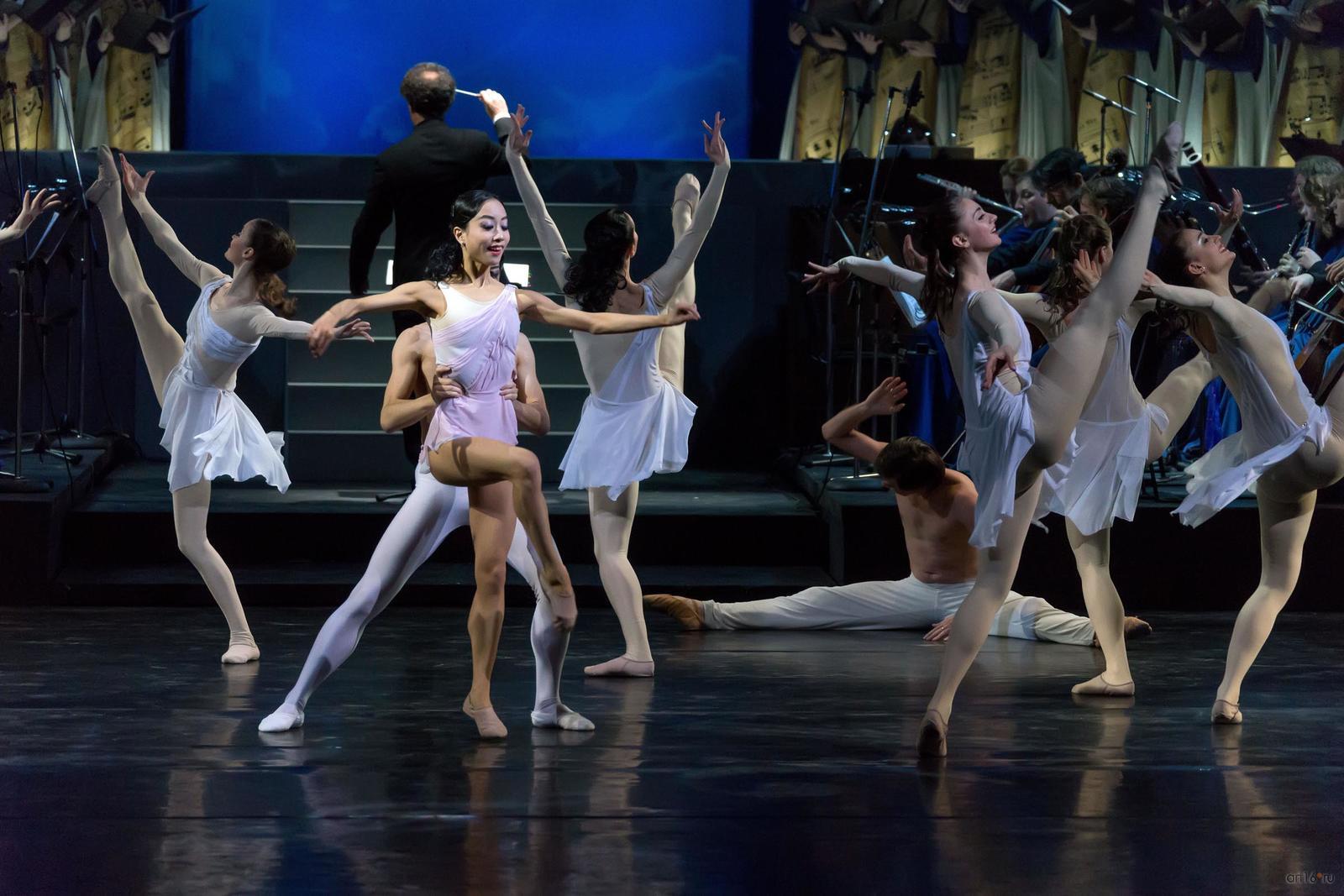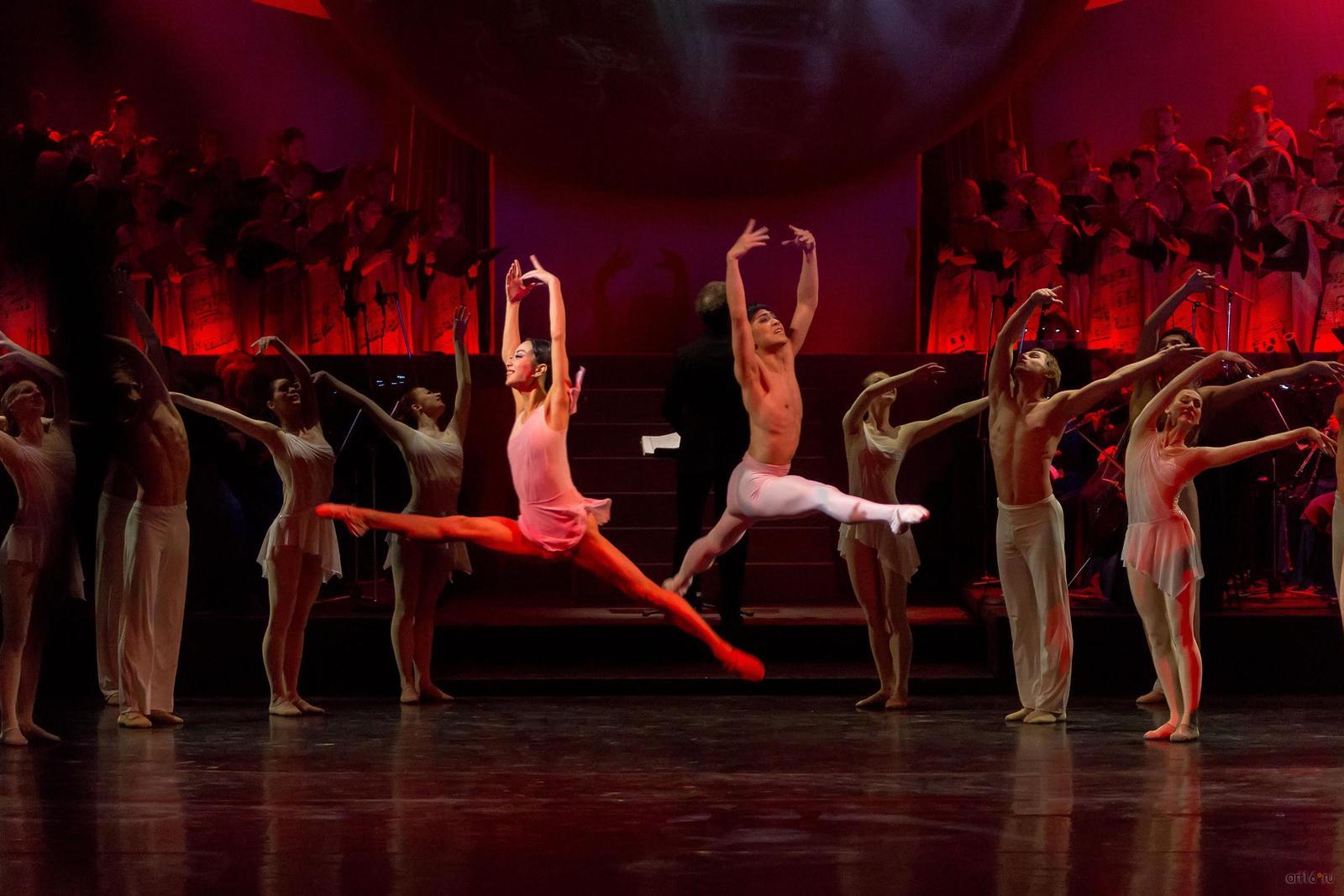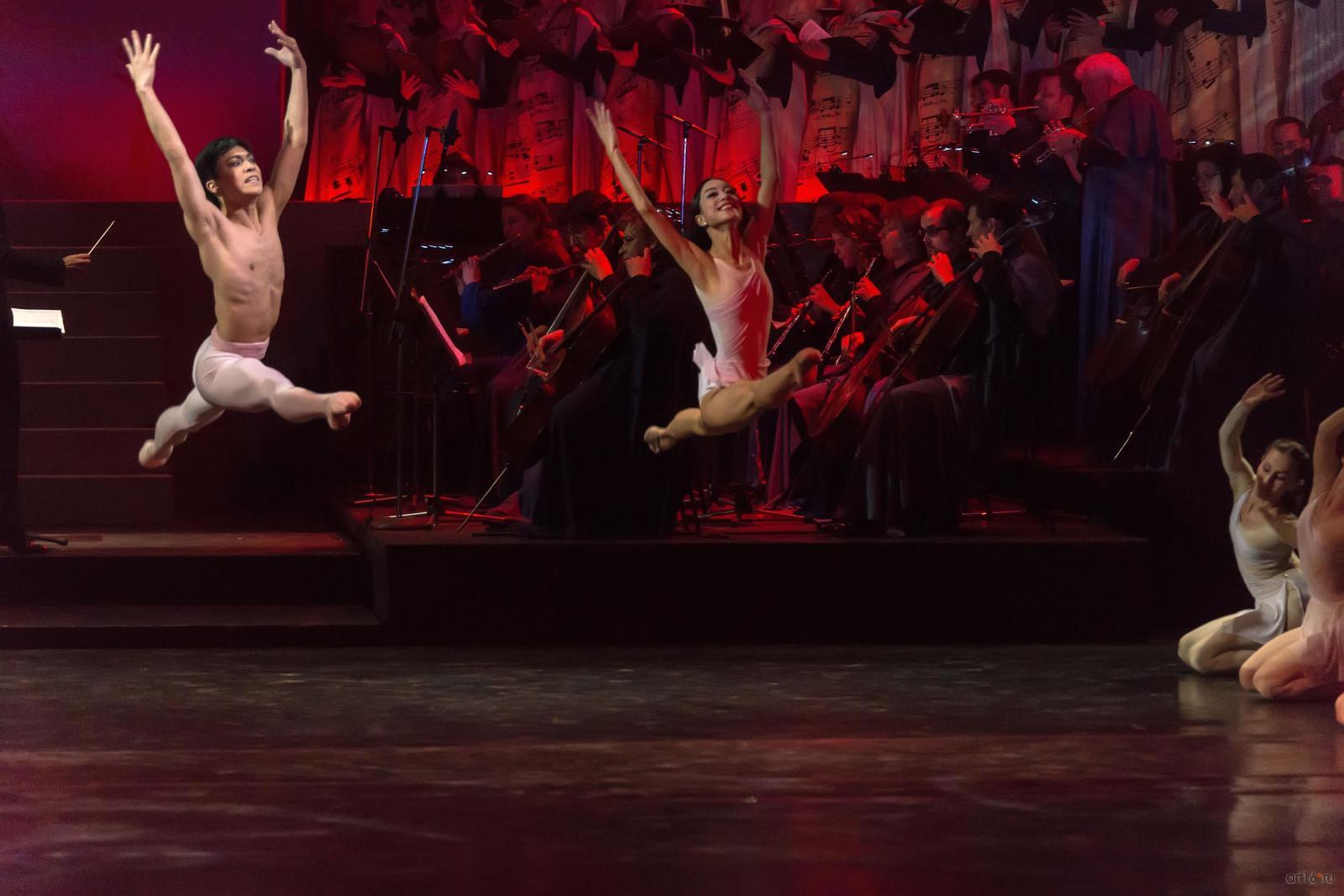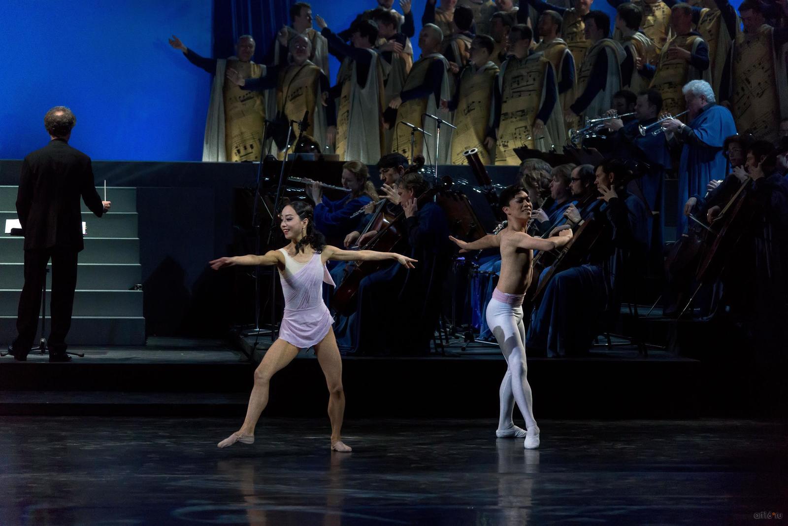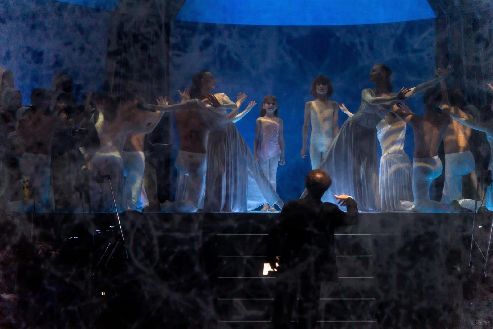 Фото №807768. Art16.ru Photo archiveЗритель с первых минут втягивается в волшебную медитацию, с помощь музыки и танца проникая в тайны мироздания и вселенной. Звучит хвалебная ода доброму и животворящему началу, каждый присутствующий ощутит на себе благотворное влияние великого музыкального творения, танцевальное представление, несмотря на всю простоту, полно искренности, природной пластики и органично вплетающейся в прелестную ткань спектакля.
