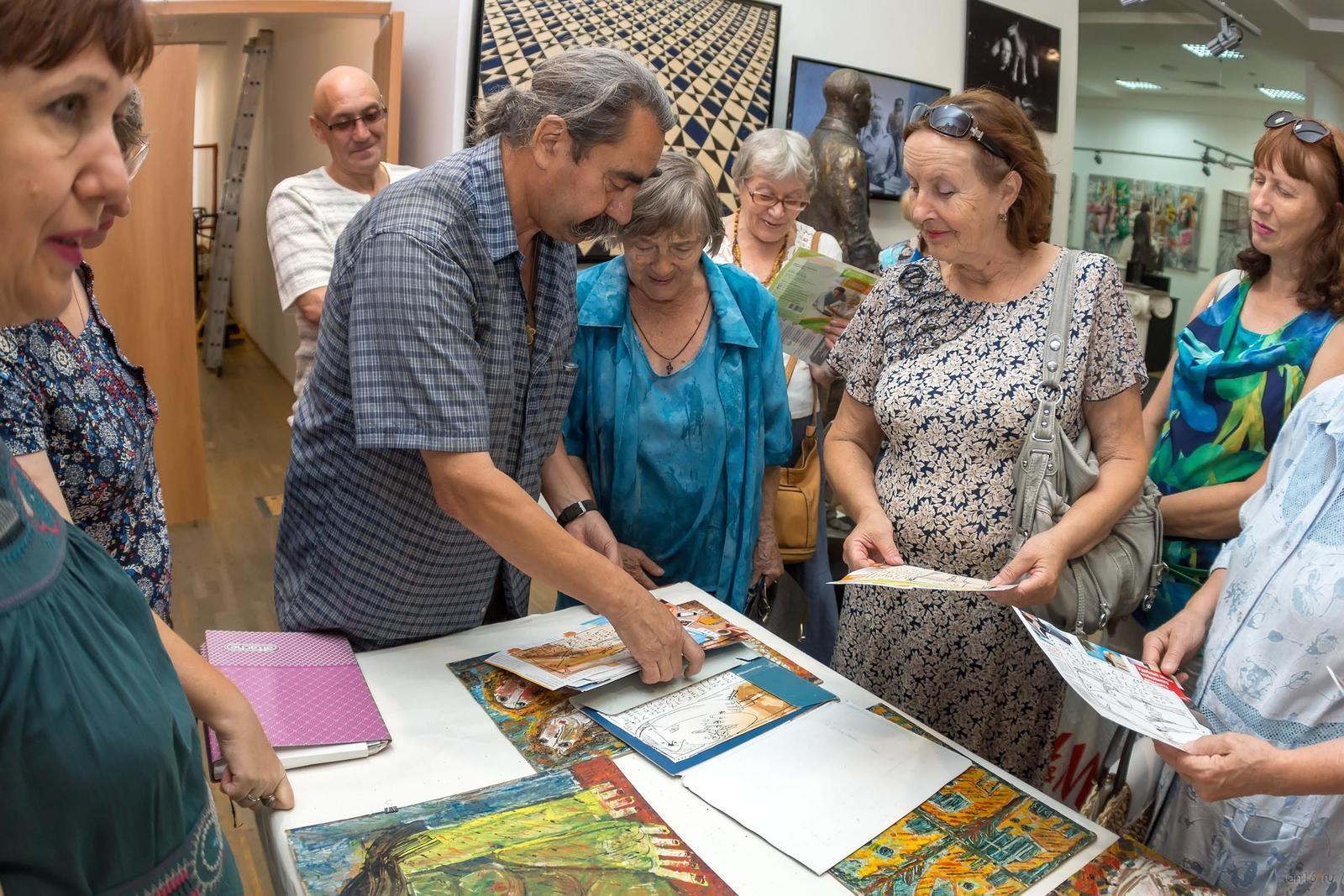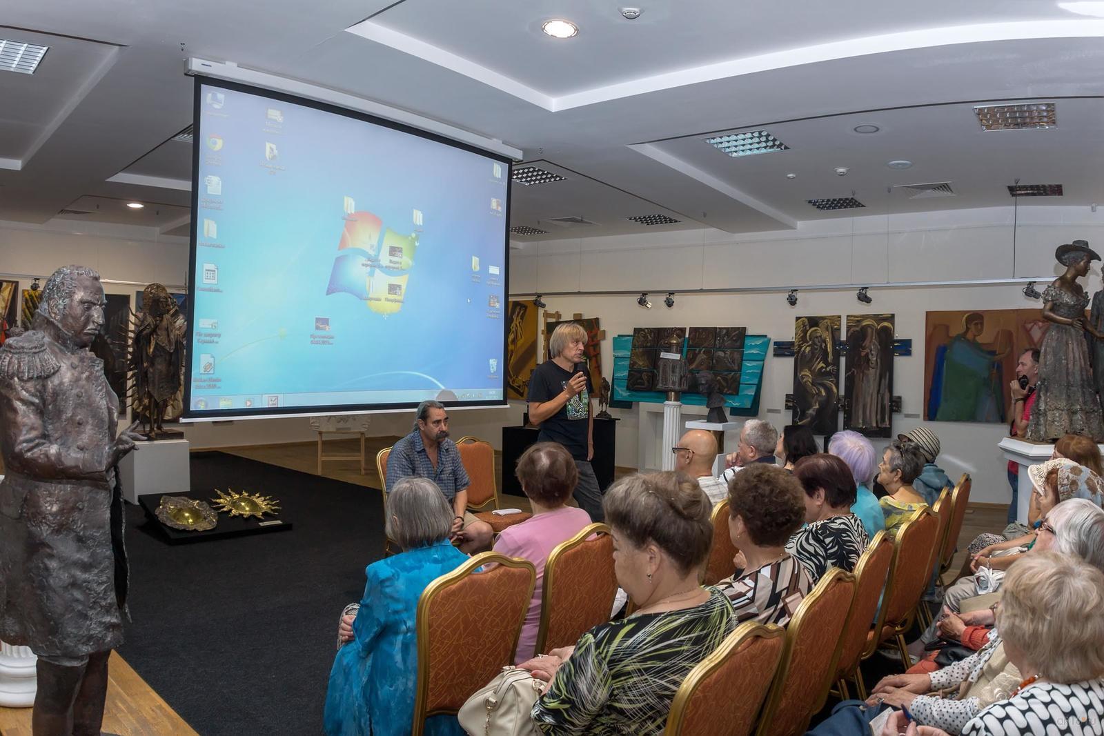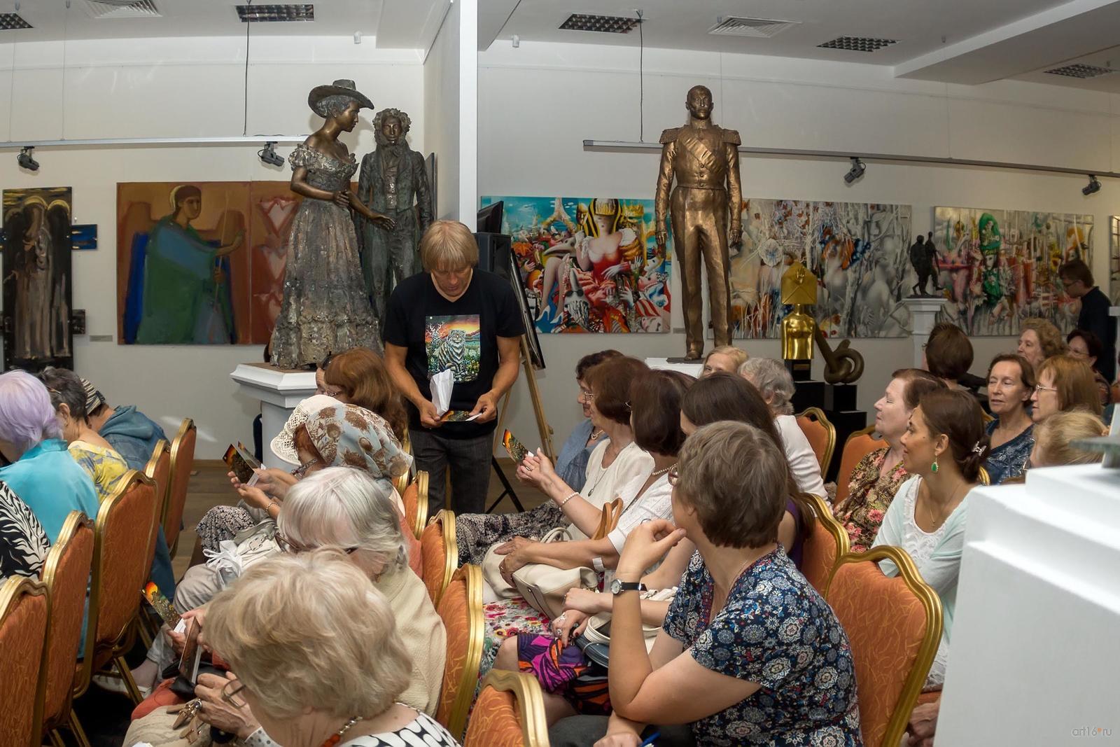 Фото №835555. Art16.ru Photo archiveХудожники поделились своими соображениями по поводу наивного искусства. Вместе со зрителем совершили экскурс в историю от наскальной живописи до Анри Русcо (1844–1910), Нико Пиросмани (1862–1918), Ивана Генералича (1914–1992). Рассказ о классиках наивной живописи сопровождался слайд-шоу. После чего авторы ознакомили присутствующих со своим творчеством. С нескрываемым удовольствием отвечали на вопросы целевой аудитории, не жадно дарили автографы поклонникам.