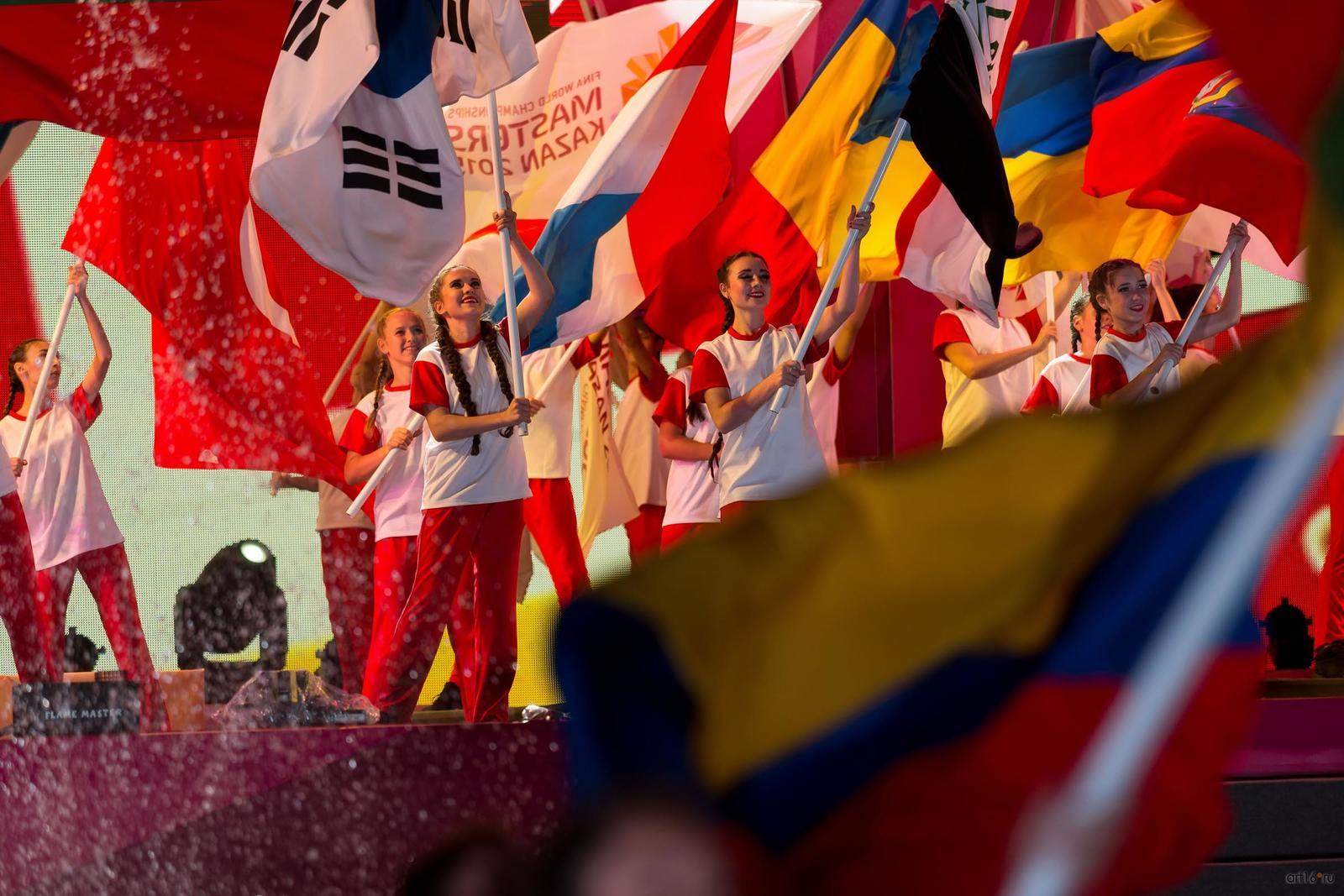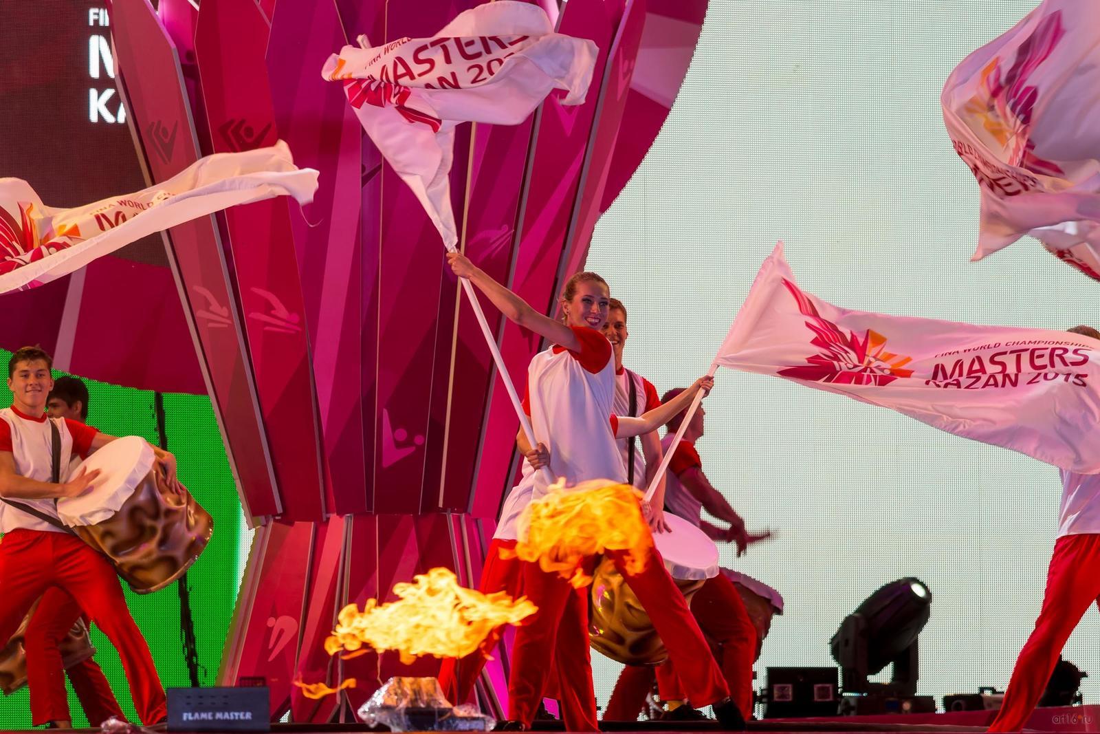 Фото №843597. Art16.ru Photo archiveВедущие церемонии открытия: Ксения Седунова и Тимур Ханбиков (Казань), комментировали все происходящее на сцене на русском и английском языках. Они рассказали публике о том, что в Чемпионате мира принимают участие около 3 тысячи спортсменов, которые соревнуются по 5 видам спорта в 14 возрастных категориях, представляющие 73 страны. На экране в это время транслировался видео-ряд о Казани и чемпионате.