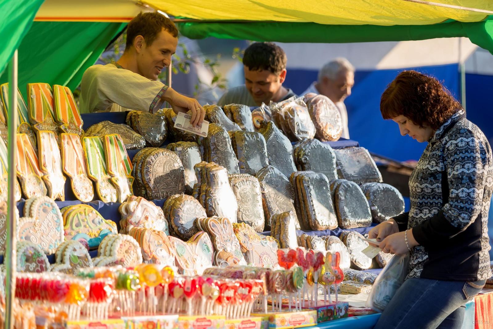 Фото №845056. Art16.ru Photo archiveСтройными рядами стоят палатки с изделиями декоративно-прикладного искусства, к ним примыкают торговые общепитовские ряды. Здесь можно купить шашлык, отведать национальную татарскую кухню.