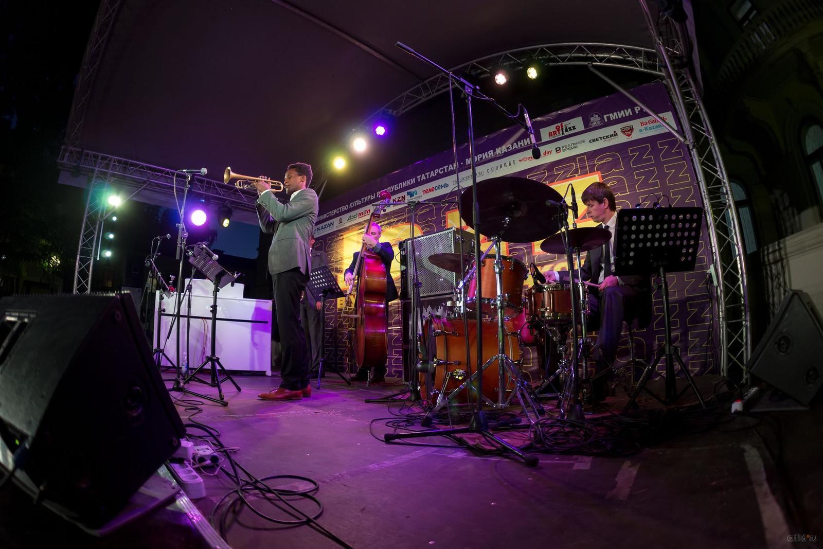Фото №846892. Art16.ru Photo archive20 августа в парке прошел седьмой из восьми летних концертов импровизационной музыки. Для любителей джаза играли трубач Джейсон Палмер (США) /Jason Palmer (USA) в сопровождении квартета Алексея Подымкина (Москва). Джазовыми музыкантами была исполнена программа «Посвящение Майлсу Дэвису». В таком (почти) составе она же была представлена еще в 2007 году в Тверской областной филармонии. Так что, неожиданностей для музыкантов и трудностей коммуникативного характера, я думаю, не было.