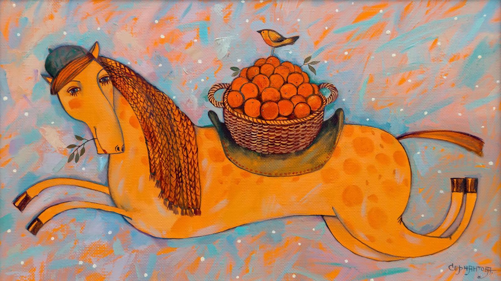 Фото №871593. Апельсиновая лошадка. Новогодняя. 2014. Сержантова О.В.холст, масло