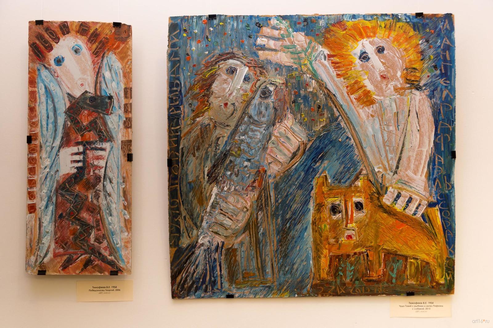 Фото №871665. Победоносец Георгий. 2006/ Чудо Товий с рыбами и ангел Рафаэль. 2015. Тимофеев В.Е.двп., масло