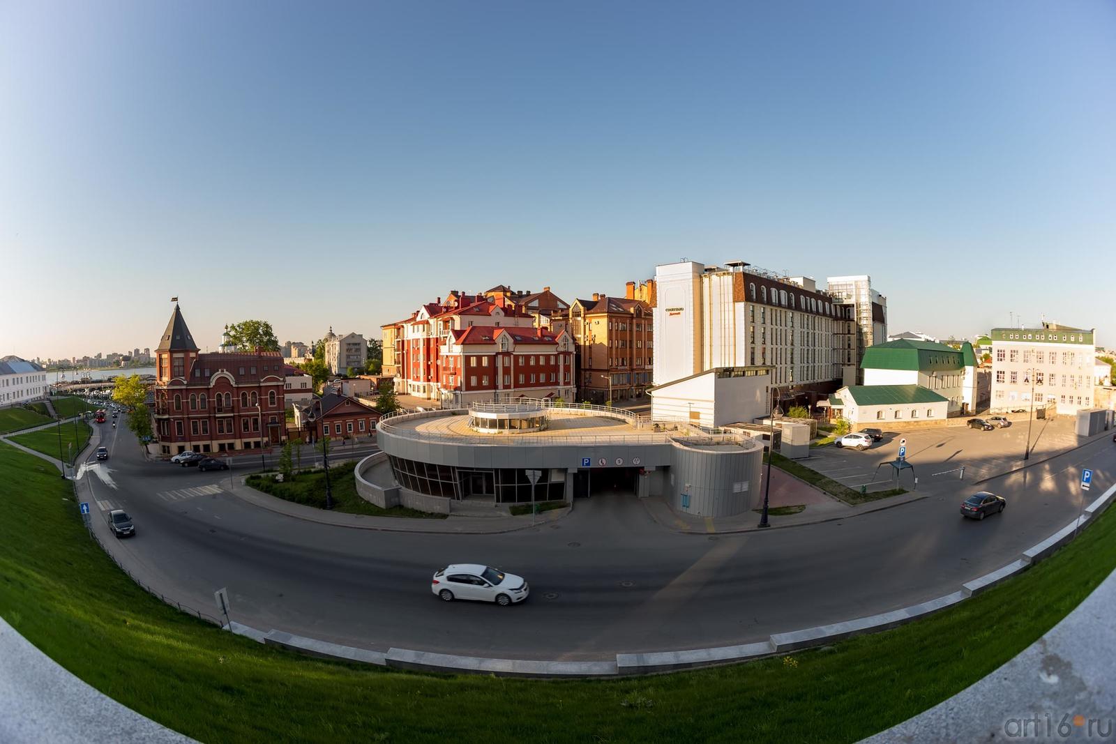 Фото №886846. Вид с кремлевской стены на улицу БатуринаВ центре фото - парковка, абсолютно не держащая архитектурный угол. Здание гостиницы «Марриотт Кортъярд» смотрит на нас неприглядным торцом. На месте гостиницы находился модерновый доходный дом, очень крепкий, построенный на века. Его долго пытались снести, поджигали, а он как стоик, не сдавался. Застройщики пообещали сделать такой же. В результате появился «Марриотт Кортъярд», сооружение, в два раза превышающее прежнее. Такова практика.
