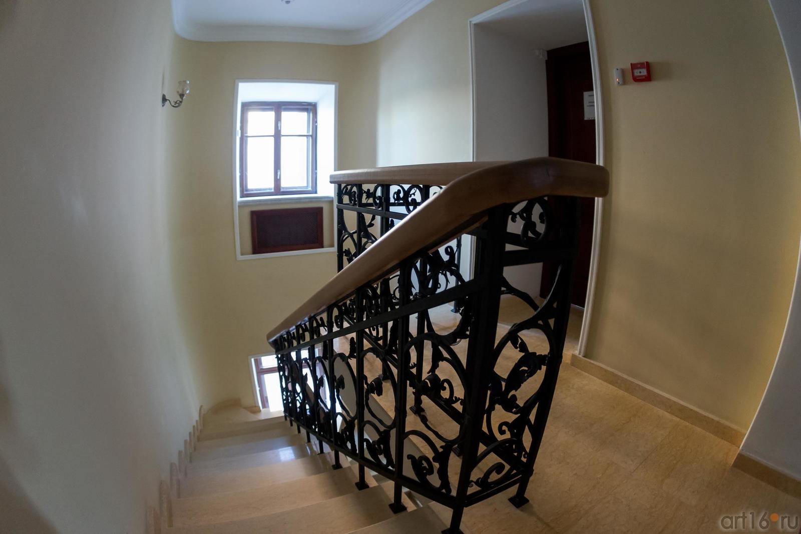 Фото №886942. Лестница в доме БанарцеваПосетив дом Банарцева, направляемся к 1-ому зданию Казанского Авиационного института. У него своя интересная судьба. В 1798 году был построен двухэтажный жилой дом для помещика Молостова. Архитектор: Ф. Е. Емельянов (ученик В. И. Кафтырева). В 1807 году дом выкуплен у Молостова городскими властями. В 1811 завершено строительство гимназии. К дому пристроили портик из 6 колонн, надстроили третий этаж с куполом, а к нему - точно такой же, как помещичий, двухэтажный дом. Проект реконструкции: В. А. Смирнов и Я. М. Шелковников. С 1932 года здание занимает Казанский авиационный институт имени Туполева.
