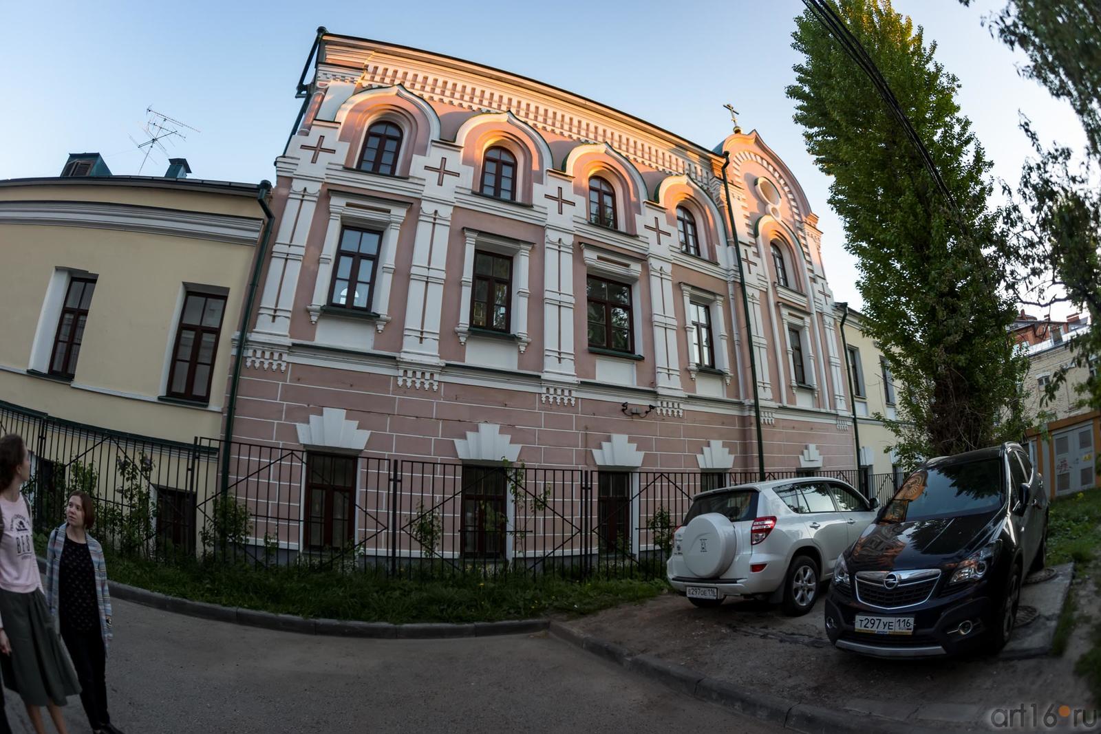 Вот мы снова у дома Урванцева. На противоположной стороне от него по улице Миславского находится Казанское Епархиальное управление Русской Православной Церкви Московского патриархата. Уже со двора видна Домовая церковь.