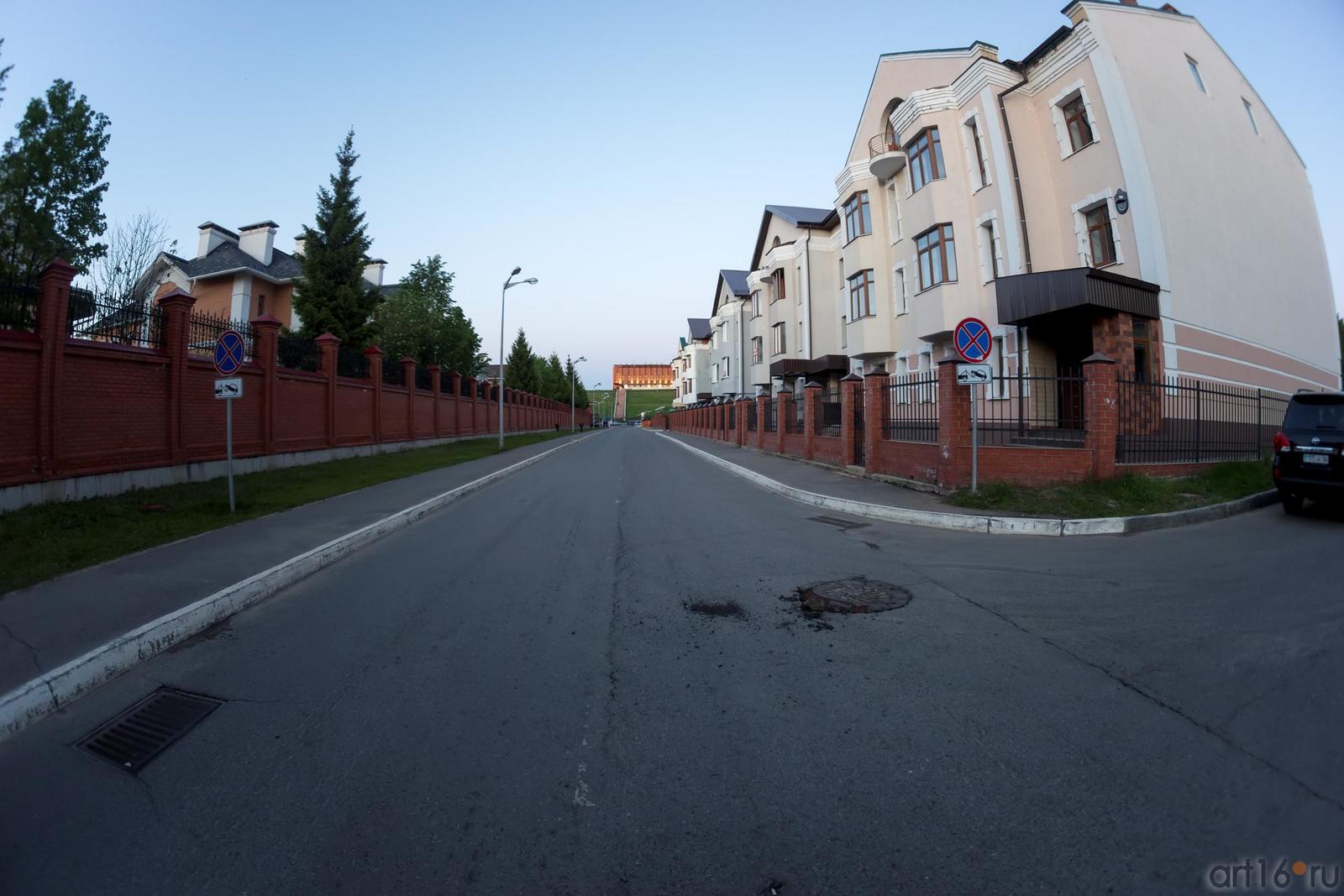 По адресу ул. Космодемьянская, 10 стоит последний сохранившийся на улице двухэтажный деревянный дом. Остальные - все новоделы. Абсолютно не интересная для прогулок улица, упирается в красный кирпичный забор. А в недалеком прошлом улица выходила к Казанке. Сейчас за стеной элитный коттеджный поселок. Кирпичная стена идет вдоль улицы Федосеевской, параллельно набережной Казанки.