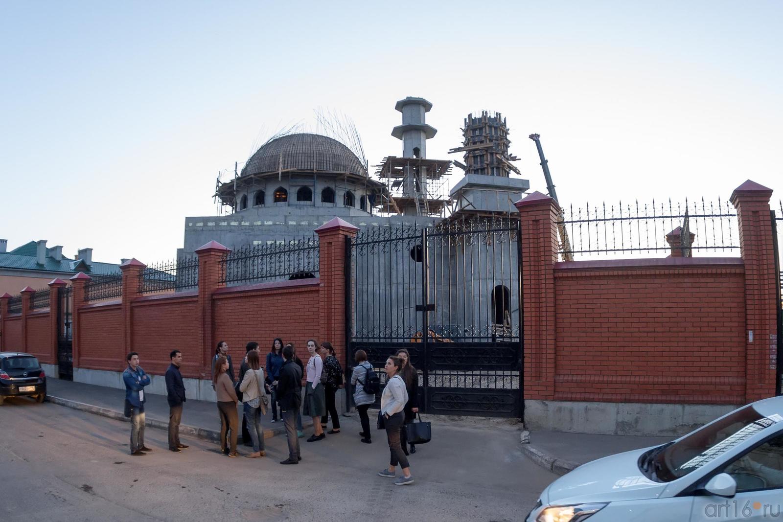 Фото №887030. Мечеть, возводимая на ул. Федосеевской за забором.От Церкови Святой Великомученицы Евдокии и строящейся мечети раскрывается вид на элитный жилой комплекс «Дворцовая набережная». Проходя мимо вычурно декорированных жилых домов, достигаем конечной точки нашей экскурсии - Дворца земледельцев.
