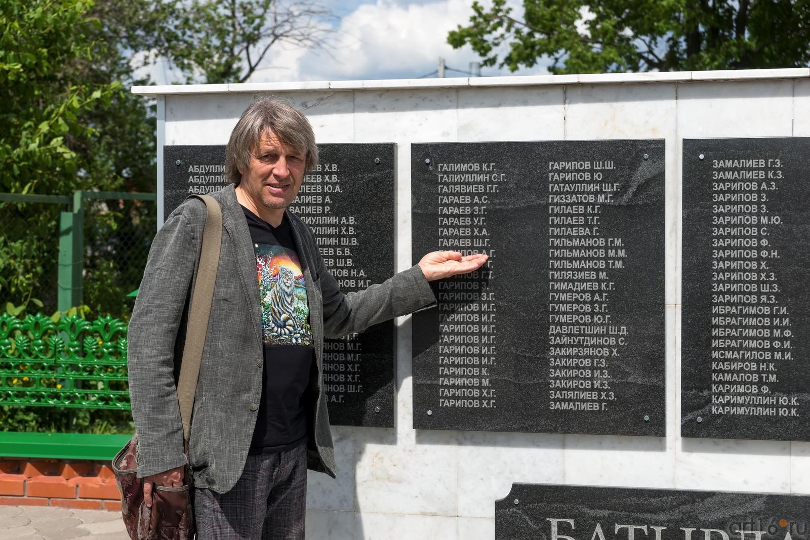 Фото №888015. Альфрид Шаймарданов возле мемориальной доски «Сабинцы, погибшие в годы ВОв»